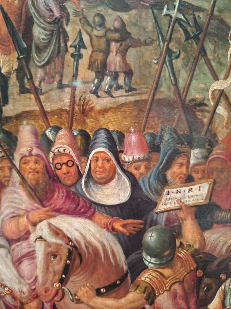 Een kasteel dus, zonder liften werd het een fysieke uitdaging. Gelukkig waren we op een doordeweekse dag rond het middaguur in november en de eerste bezoekers. Ik vond het een onverwacht genoegen om er met mijn moeder rond te dwalen. Ik had net de gewoonte aangenomen om van een aantal werken foto’s te maken. Eén werk trok mijn aandacht meteen. Jo Koster was de schilder.