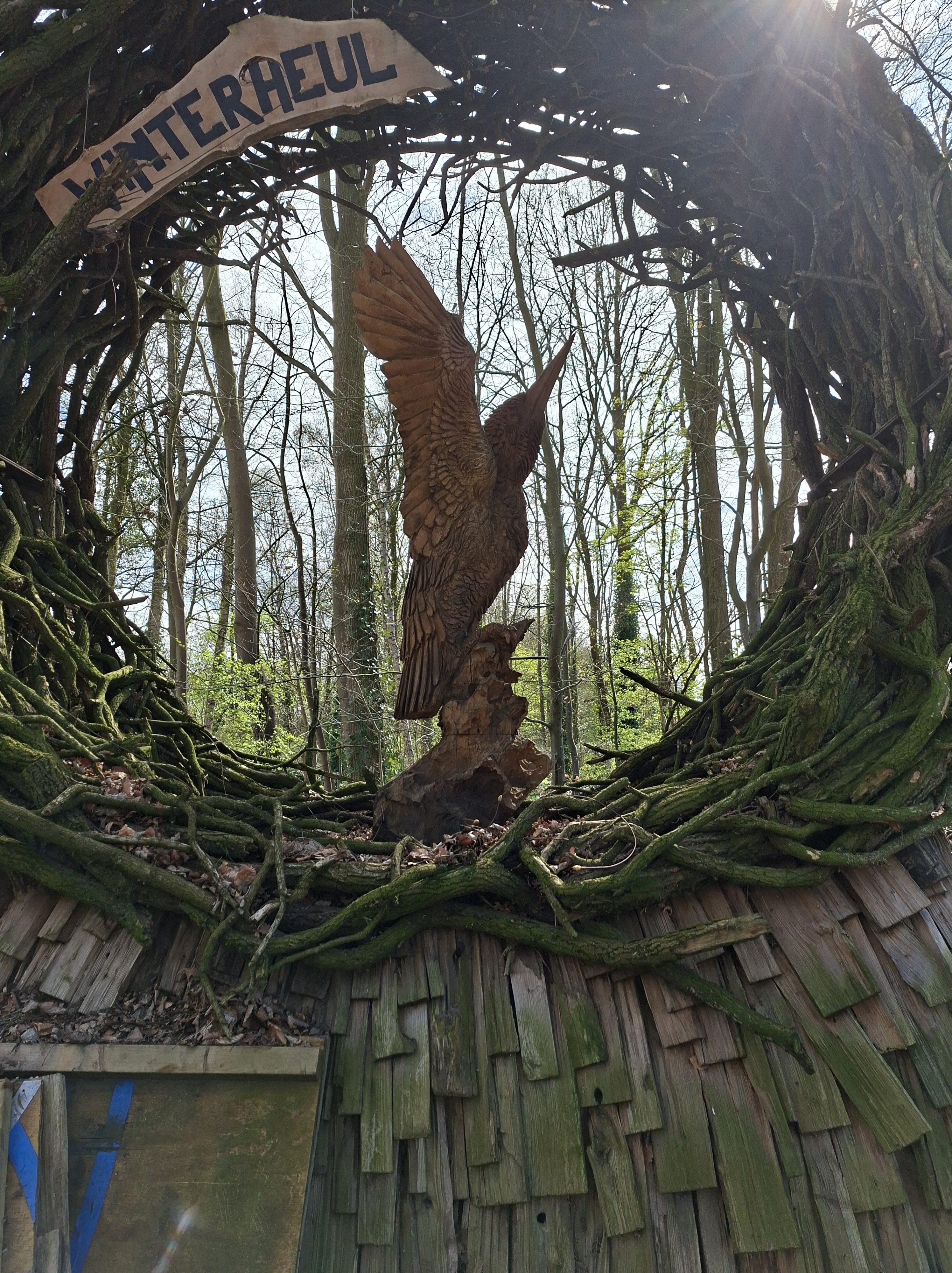 Lullen en niet kieken, daarmee wordt deze wandeling gekenschetst. Met neef Mark hebben ik het 130e klompenpad gewandeld, het noordelijke deel van het Oranjeveldpad tenminste, inclusief de aanlooproute vanaf de Molen in Wenum Wiesel. Het was geen straf, maar de eerlijkheid gebied mij te zeggen dat de onderlinge conversatie meer aandacht opslokte dan het maken van foto’s oftewel kiekjes. De titel, lullen en niet kieken is daarmee verklaard. Er is veel gebeurd het afgelopen jaar en we spreken elkaar niet heel regelmatig, maar vaak genoeg om gewoon verder te praten sinds onze laatste wandeling zo’n drie jaar geleden. Goed niet zo heel veel kieken dus, maar we hebben echt wel gekeken. We hebben houtsnijwerk gezien, maar ook opvallende landschapskenmerken en een raar bord.