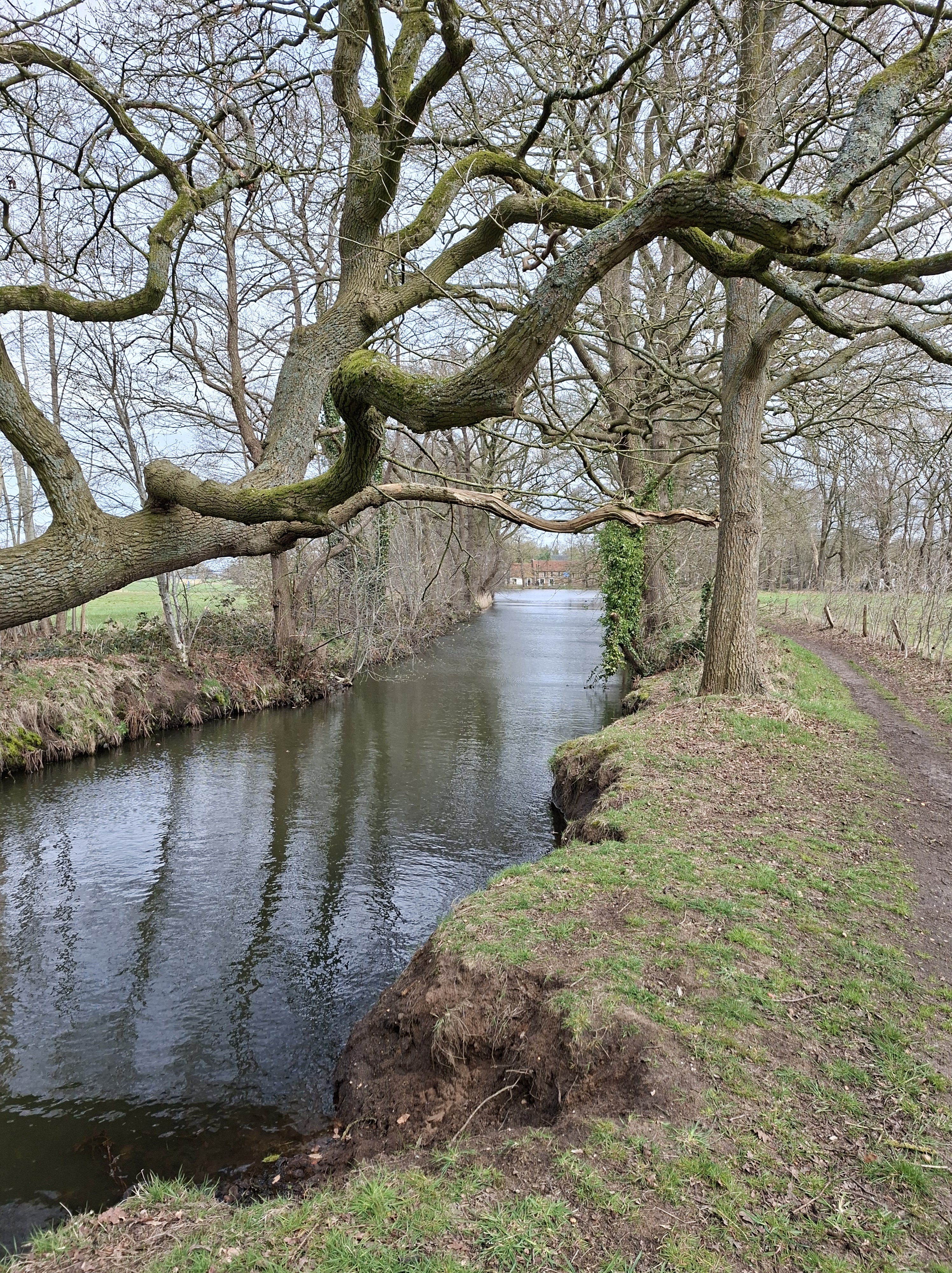Carnaval staat op het punt van losbarsten, maar dat is op de achtergrond in Didam op het Greffelkampsepad. Sneeuwklokjes kwamen we tegen, maar voor de rest doet dit klompenpad nog erg winters aan, en zompig. Toch was het niet echt koud op deze vrijdag de 13e. Het is bijna 9 maanden geleden dat ik hiervoor een klompenpad heb gelopen. Ik voel me bijna bezwaard, alsof ik een oude liefde heb verwaarloosd. Of zal ik de omkering gebruiken, ik word ontvangen als de verloren zoon, nooit weggeweest van ‘thuis’. Al met al het 129e pad in een nog weinig kleurrijke omgeving, maar het voelde goed.
