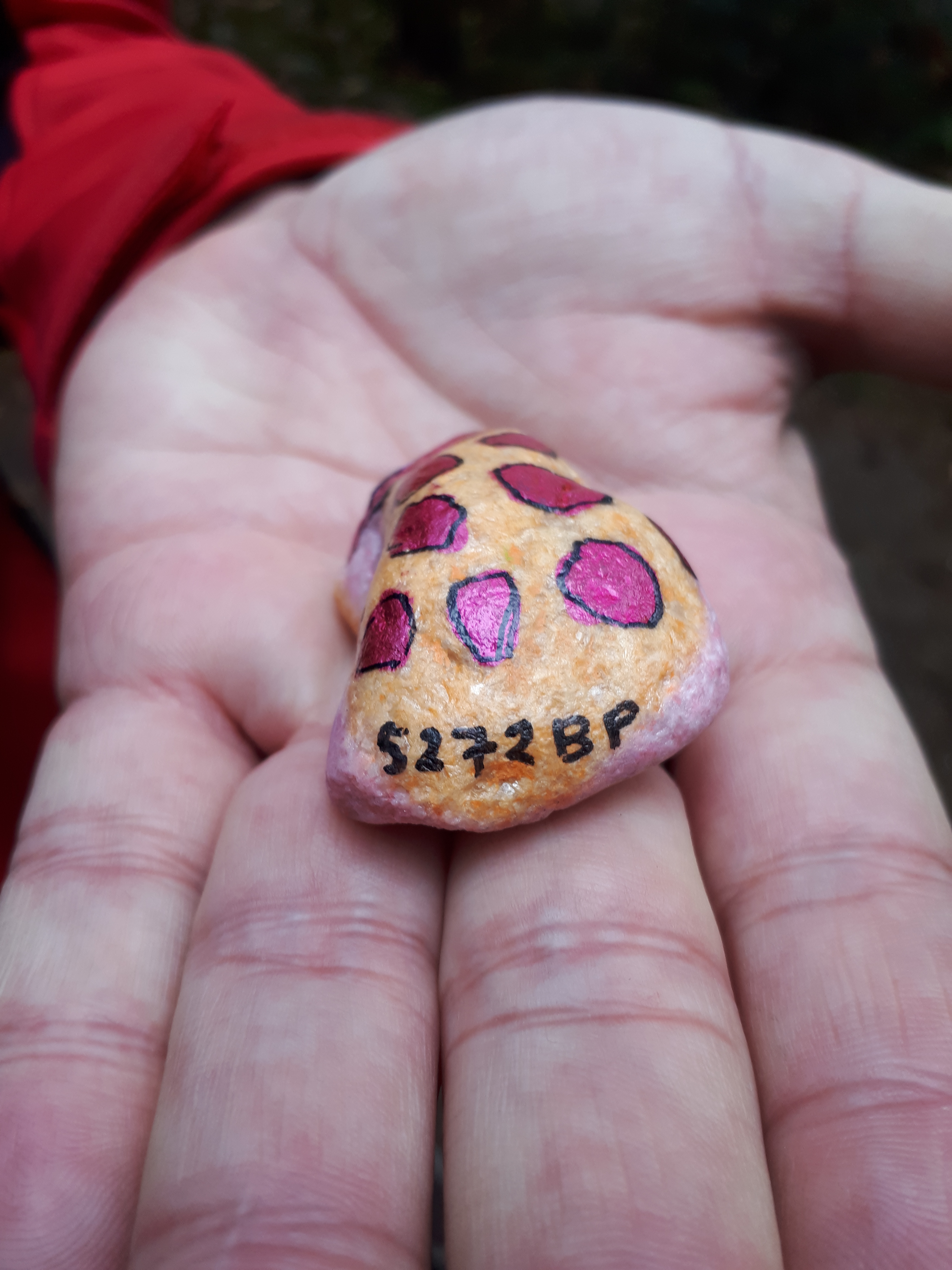 Ik kreeg dus een geverfde kei van een collega. Ik mocht hem houden, maar dat is niet helemaal de bedoeling volgens mij. Ze zinspeelde er wel op dat ik op een van mijn klompenpadwandelingen mijn burgerplicht in coronatijd zou doen. Om niet helemaal een modderfiguur te slaan op een KIDS pad, nam ik mijn 26-jarige zoon mee. Het blijft je KID natuurlijk.