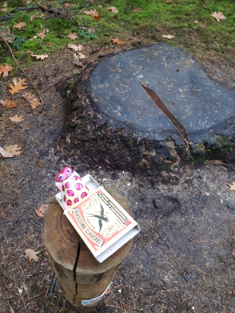 Al wandelend vonden we wel een plekje om de steen neer te leggen om gevonden te worden. In het luciferdoosje zit een kleine constructie hoe te handelen. We zullen dit delen op genoemde Facebookpagina.
