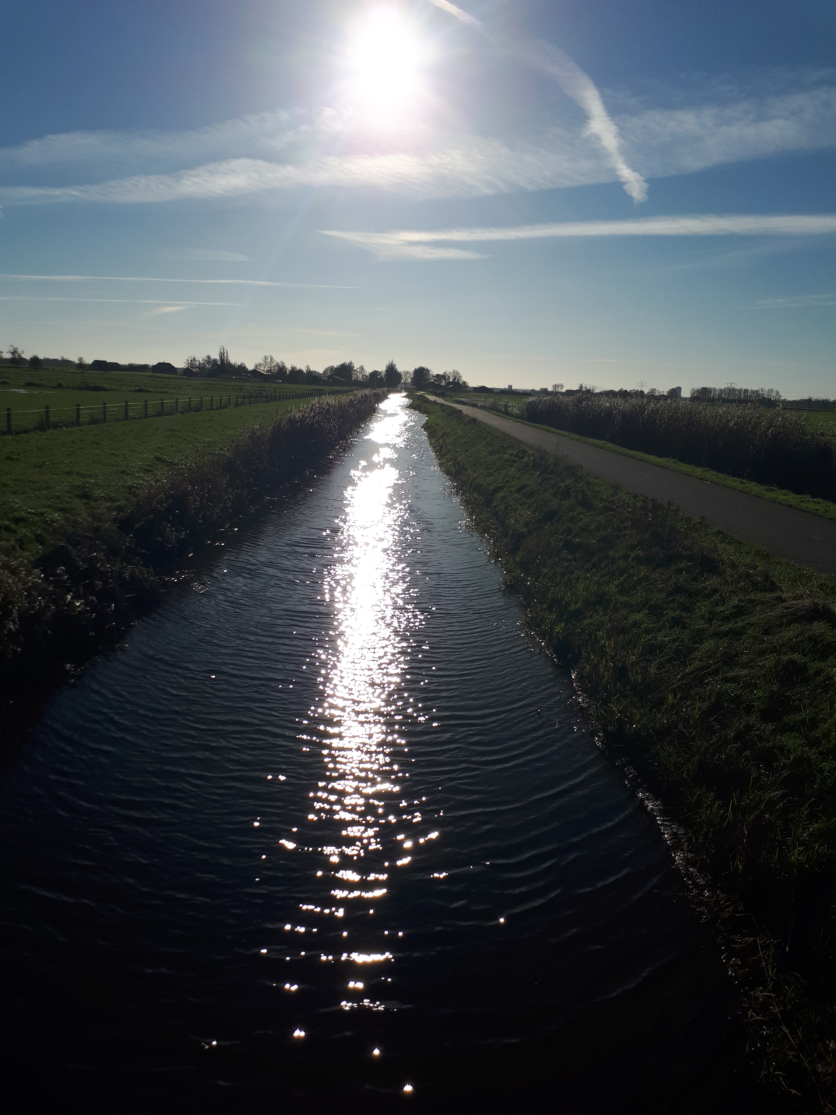 Aan de hand van het Veendijkpad zal ik de charme van klompenpaden uitleggen. Het begint al bij de keuze. Het is woensdagmorgen, een kleine reservoir aan overuren bij elkaar geharkt en kijk naar buiten. 18 november en 16 graden, de luxe dat ik mijn eigen werk kan indelen en voor dat ik het weet, vind ik mezelf terug in de auto. Op naar Bunschoten-Spakenburg. Ik was er nog nooit geweest, dus een mooie legitieme reden om er een poolshoogte te gaan nemen. Eerste voordeel van een klompenpad, je komt op plekken die je niet zomaar aandoet. Ik ga er altijd vanuit dat de plaatselijke bevolking heel goed weet wat de mooiste plekje zijn in hun gemeente, welke klompen- , kerken- of andere kuierpaden in aanmerking komen voor een fijne wandeling. Opsommend op het Veendijkpad was dat achtereenvolgens, de haven, het Veluwemeer, oer Hollandse landschappen met sloten en bruggetjes, hier en daar een monumentale boerderij, veel vogels en binnen de bebouwde lekker de sfeer proeven van de dorpen. En niet alleen de sfeer, maar uiteraard ook iets gehaald bij de visboer.
