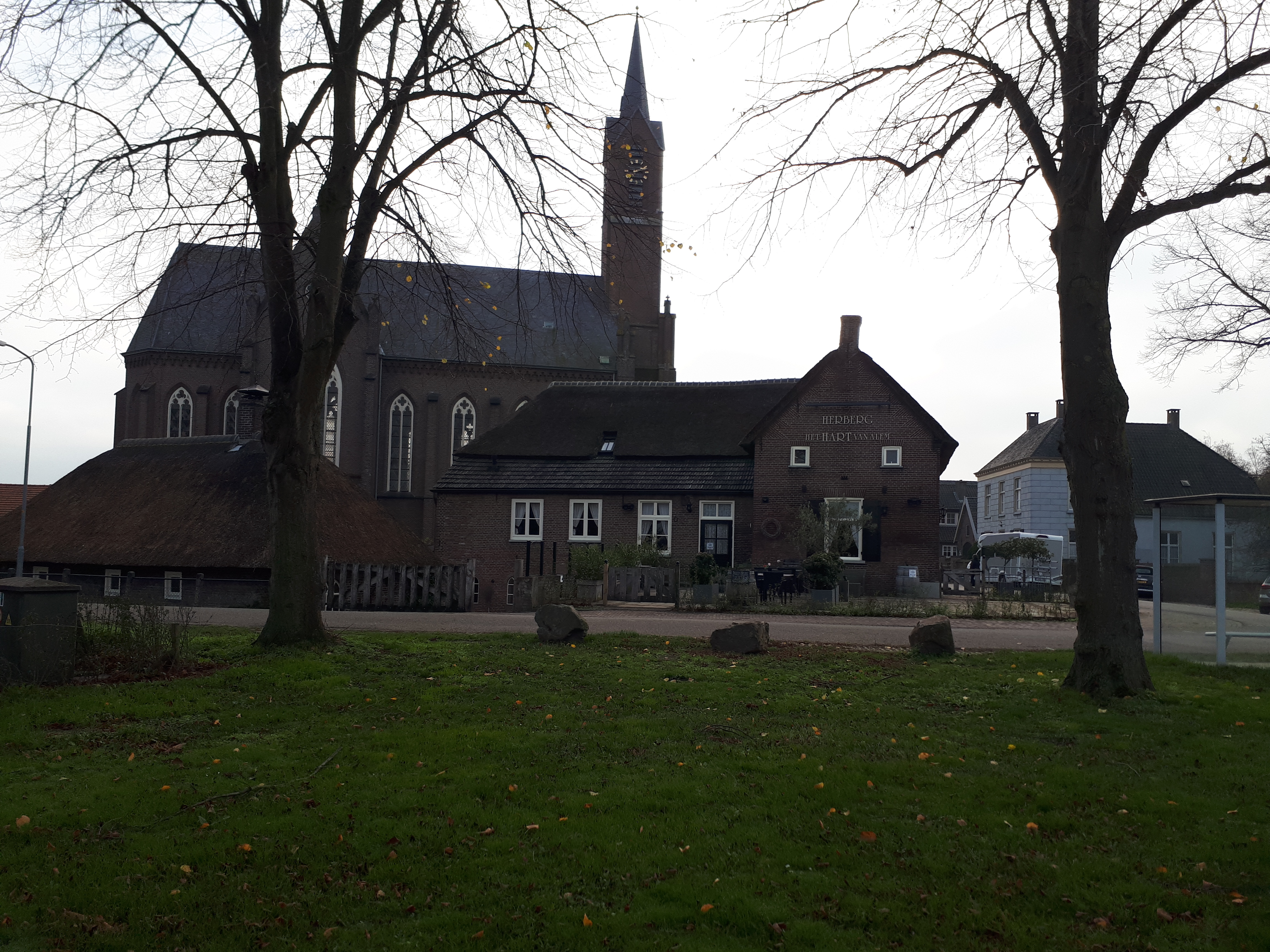 Voorts lezen we dat Alem vroeger Brabants was, maar door de kanalisatie van de Maas bij Gelderland is getrokken. Zullen ze hier Carnaval vieren? Wat ze wel hebben is een heilige waar ik nog nooit van heb gehoord namelijk Sint Odrada. Dat kunnen we thuis wel even googelen. En Google leert me dat Odrada een vroom Vlaams meisje is dat in haar devotie naar God werd tegengewerkt door haar omgeving. Dit laatste is niet bevorderlijk voor haar gezondheid. Als laatste wens had zij dat ze begraven wilde worden op de plek waar de ossen halt hielden. Na haar dood lag haar lichaam namelijk in de ossenwagen van haar vader. De ossen stopten in Alem. Sinds dien is de heilige Odrada verbonden aan Alem. Onderweg tijdens de wandeling leefde ik nog in onwetendheid op dit gebied.