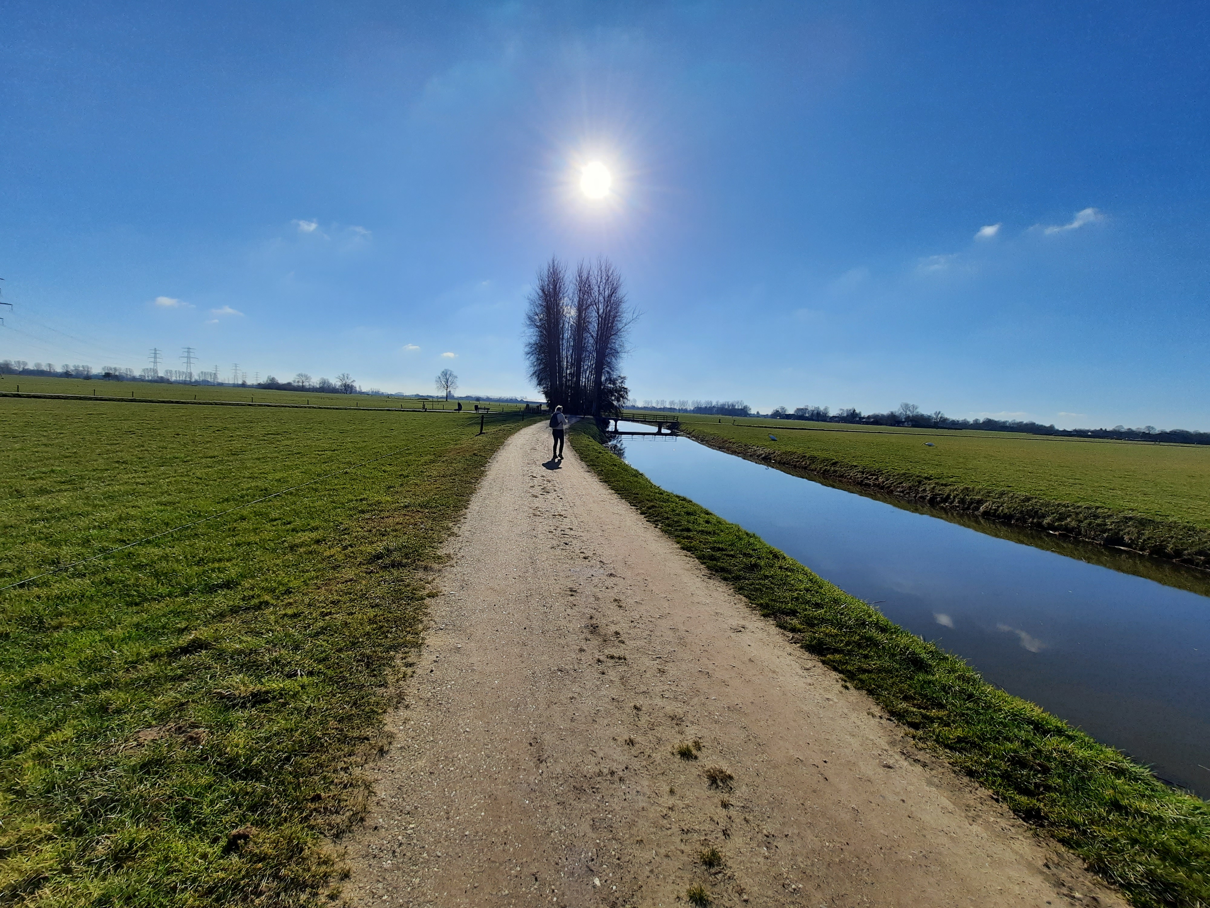 Het maken van foto’s leverde enige problemen op. Sinds enige dagen heb ik een nieuw toestel (mobiel) met wel vier camera’s verzekerde mijn jongste zoon. ,, Poeh hé” dacht ik. Voor dat ik alle mogelijkheden een beetje door heb en ook nog snel kan hanteren, zijn we vier generaties mobieltjes verder. Ik probeer dus maar wat met panorama, afstanden, dichtbij etc……Een beetje op goed geluk. Het Klompenmakerspad leent zich er wel voor om een beetje te experimenteren met knopjes. Bij de ene krijgt je een veel bredere opname dan bij de andere weet ik inmiddels. Nu moet ik het de volgende keer wel onthouden.