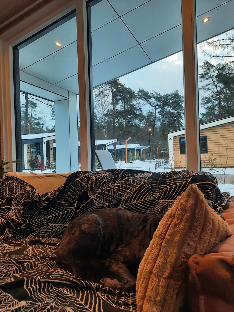 Wat is het geval, klimaatproblemen ten spijt, maar het dreigt winter te worden. Donderdagochtend had ik al een mooi plaatje geschoten van onze hond, liggend op de bank in ons tijdelijk verblijf in Garderen. Sneeuw! Niet indrukwekkend veel, maar wel wittig en de belofte van grote hoeveelheden voor vrijdag. Code geel, oranje, rood of welke kleur van de regenboog dan ook. Wandelen in het Speulderbos, klaar om de mooiste kitsch foto’s te maken. Code oranje was helaas hier wel heel erg pastel.