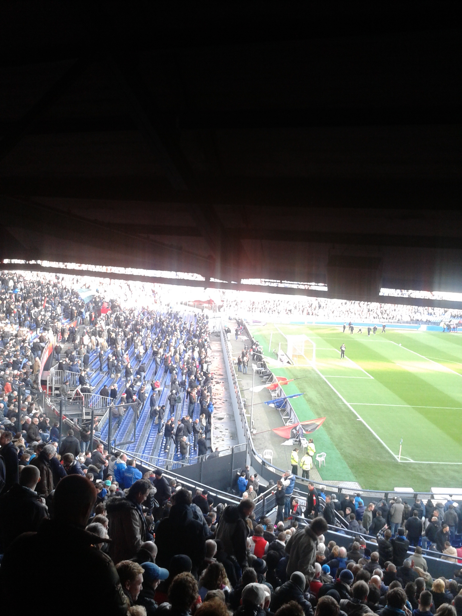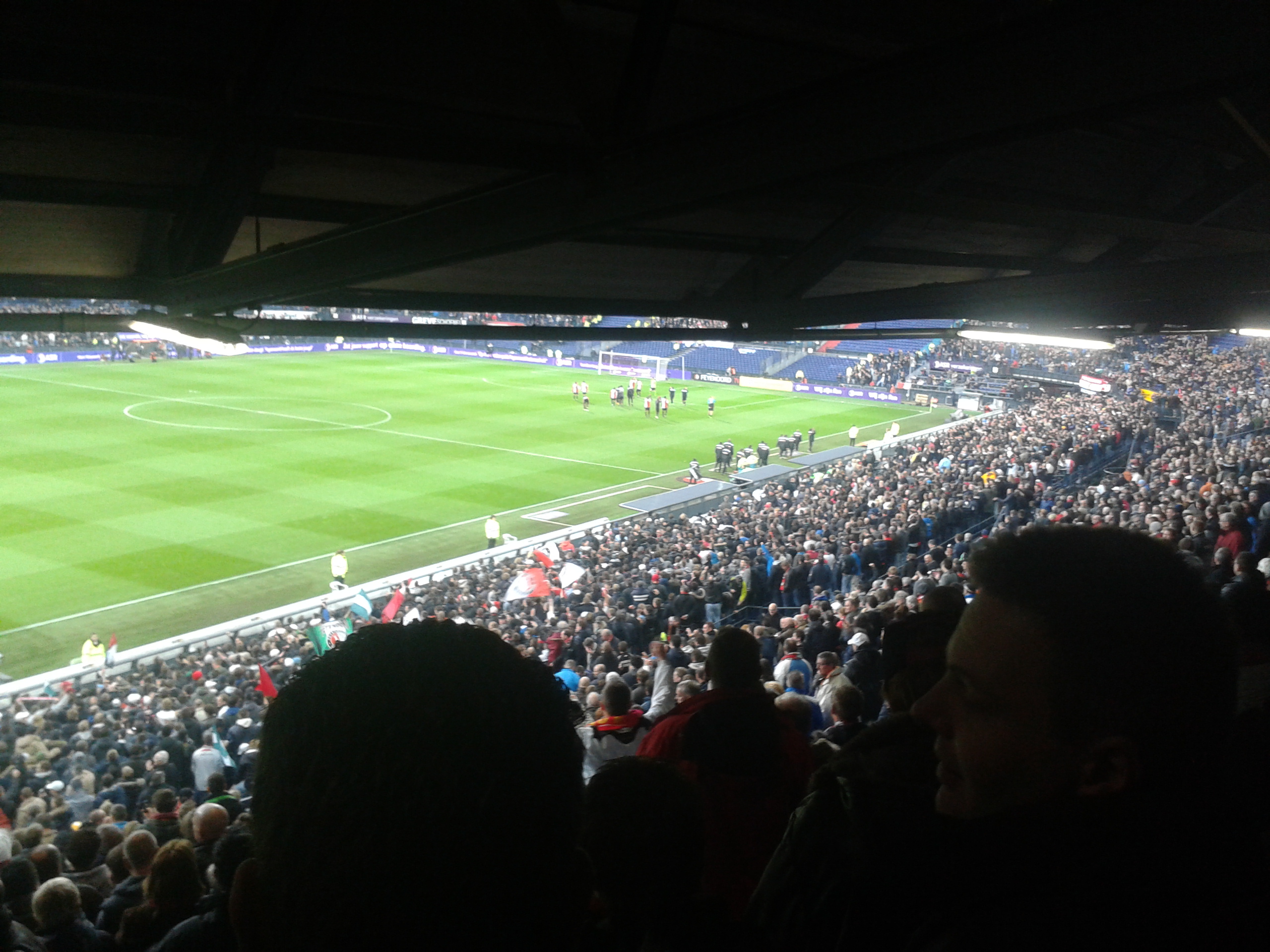 Bijna dertig jaar geleden zag ik mijn eerste, tevens laatste topper van Feyenoord. Vandaag was het weer zover, samen met zoonlief naar De Kuip om ‘de onzen’ tegen PSV te zien spelen. Passend bij de tijd van het jaar zou ik willen beweren ‘Vol verwachting klopt ons hart’. In de wetenschap dat Feyenoord de laaste wedstrijden met pieken en dalen speelt, rijden we optimistisch naar Rotterdam. Het was rustig op de weg, dus binnen vijf kwartier waren we bij De Kuip, ruim op tijd in het stadion. Onderweg bespraken we de wedstrijd. We waren benieuwd of het spandoek ‘Deze wedstrijd werd mede mogelijk gemaakt door de gemeente Eindhoven’ te zien was. Ik vind dat namelijk een leuk spandoek dat aangeeft hoe verschillend gemeenschapsgelden verdeeld worden aan profclubs en daarmee oneerlijke concurrentie met zich meebrengt. Het zij zo, we blijven optimistisch.