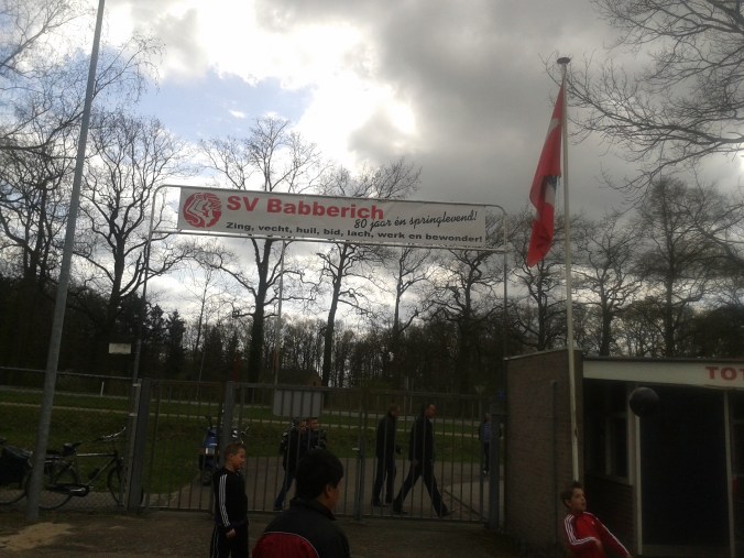 In de zeer frisse eerste aprilzon nam ik plaats aan de kant van het veld. Het leek wel of de weergoden ook heel goed wisten wat 1 april betekende en dus ons allen een loer draaiden. Helemaal gerust op een goede afloop was ik nog niet vanwege al dat puntenverlies de afgelopen maanden. Dromen over een reisje Groesbeek kan ik voorlopig uitstellen, vrees ik. Naast mij staan een aantal hevig mopperende Babberichers (of Babbersen, hoe noem je die mensen) die hun spelers hartstochtelijk souffleerden. “Mo, je moet dit, Mo, naar voren, Mo, korter erop.” Mo deed gewoon zijn ding. Ook ene Röhmer kreeg er van langs met veel gvd’s. (Misschien moet ik u tussendoor een geheimpje vertellen over de omgeving van Babberich. De plaats is een onderdeel van de gemeente Zevenaar en ligt tegen het Gelders Eiland aan (gemeente Rijnwaarden). Van vroeger uit een stukje door rivieren omsloten Nederland dat bekend stond om het vechten tegen de elementen. De godvruchtigheid van de bewoners was iets minder dan elders in Nederland. Het vloekend vermogen was echter significant groter dan elders. Ik heb inmiddels enige ervaring. Deze middag werd ik er mee geconfronteerd. En ik niet alleen ook ‘Mo’ en ‘Röhmer’.