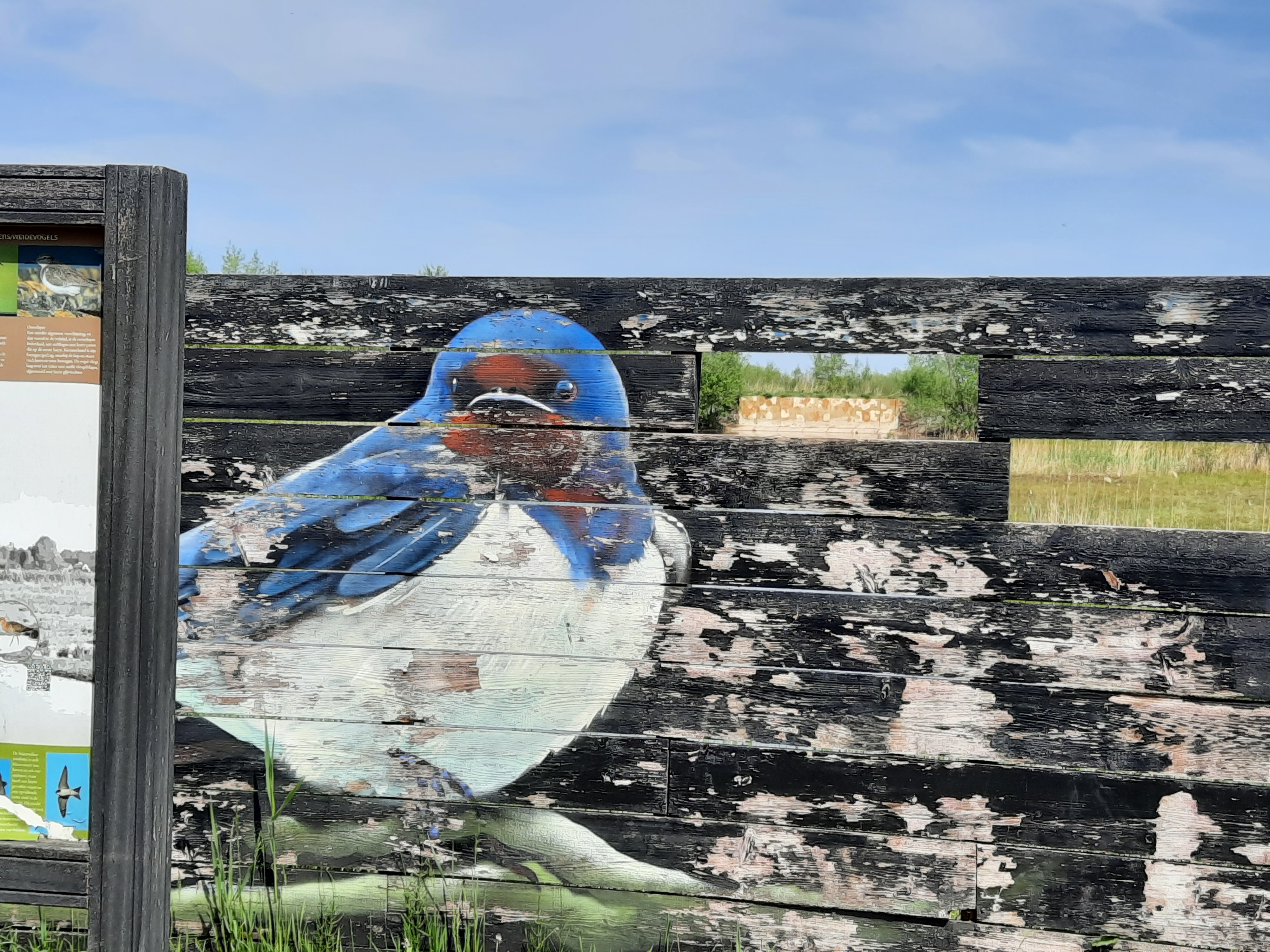 Ook mijn kunstzinnige vorming wordt tijdens deze wandeling op de proef gesteld, maar daarbij weet je nooit welk zintuigen geprikkeld worden. Dit weekend werd het Harloërpad opgeleukt door een kunstroute: Kunst aan het Klompenpad. Hierover volgt mogelijk in deze dagen een separaat blogje. Behoudens de kunst is het Harloërpad een alleraardigste wandeling waarbij historie, oude boerderijen en natuur elkaar op een prettige manier afwisselen. Anderhalf jaar geleden maakte ik op het Grift en Graftenpad al kennis met het natuurgebied in wording, de Binnenlandse Hooilanden en vandaag dus opnieuw. Veel vogelaars waren er. Zelfs ik hoorde en zag dat er voldoende te zien en te horen was, maar er is een verschil tussen zien èn zien alsmede tussen horen èn horen. Ik ben dus geen vogelaar. Dat is maar goed ook, want het vereist wel een imposante uitrusting om een beetje netjes voor de dag te komen. Goede fiets, verrekijker, camera met bescherming, stoeltje en kleding in schutkleuren, maar dan doe je wel mee in vogelland.
