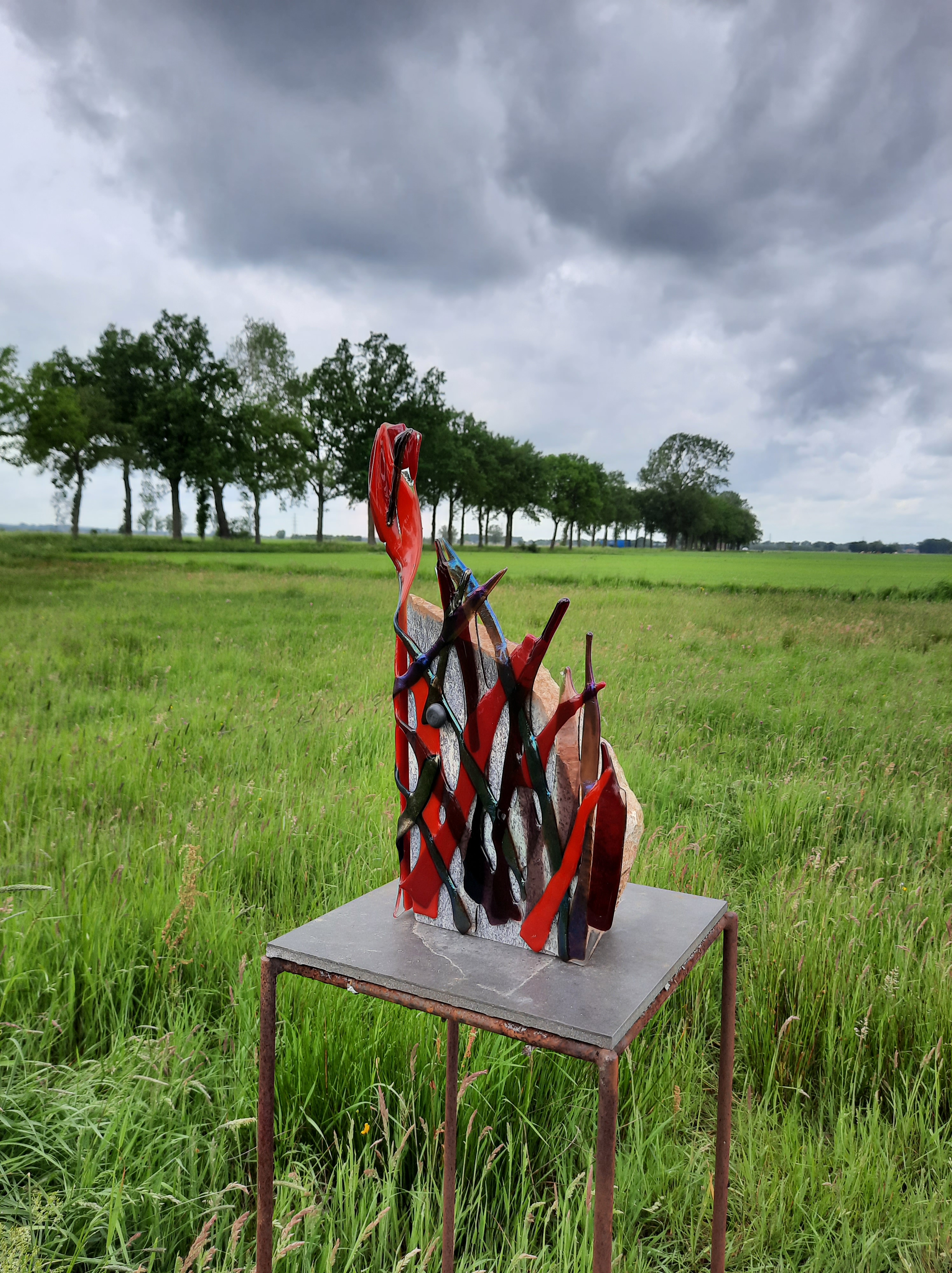 Zelf houd ik het vooral nog bij de landschapskiekjes en de historische gebouwen en net als de vogelaar die een grutto of stern in hun lens hebben gekregen, ben ik vaak best tevreden met het resultaat. Vandaag kwamen er de kunstobjecten bij. Ik heb zelfs een ketting van een glaskunstenaar gekocht in de kleuren die die mijn partner waardeert bij de vrouwencirkels die ze leidt. Ik heb het nog niet gegeven, maar ze mag het komen halen als ze dit stukje leest.