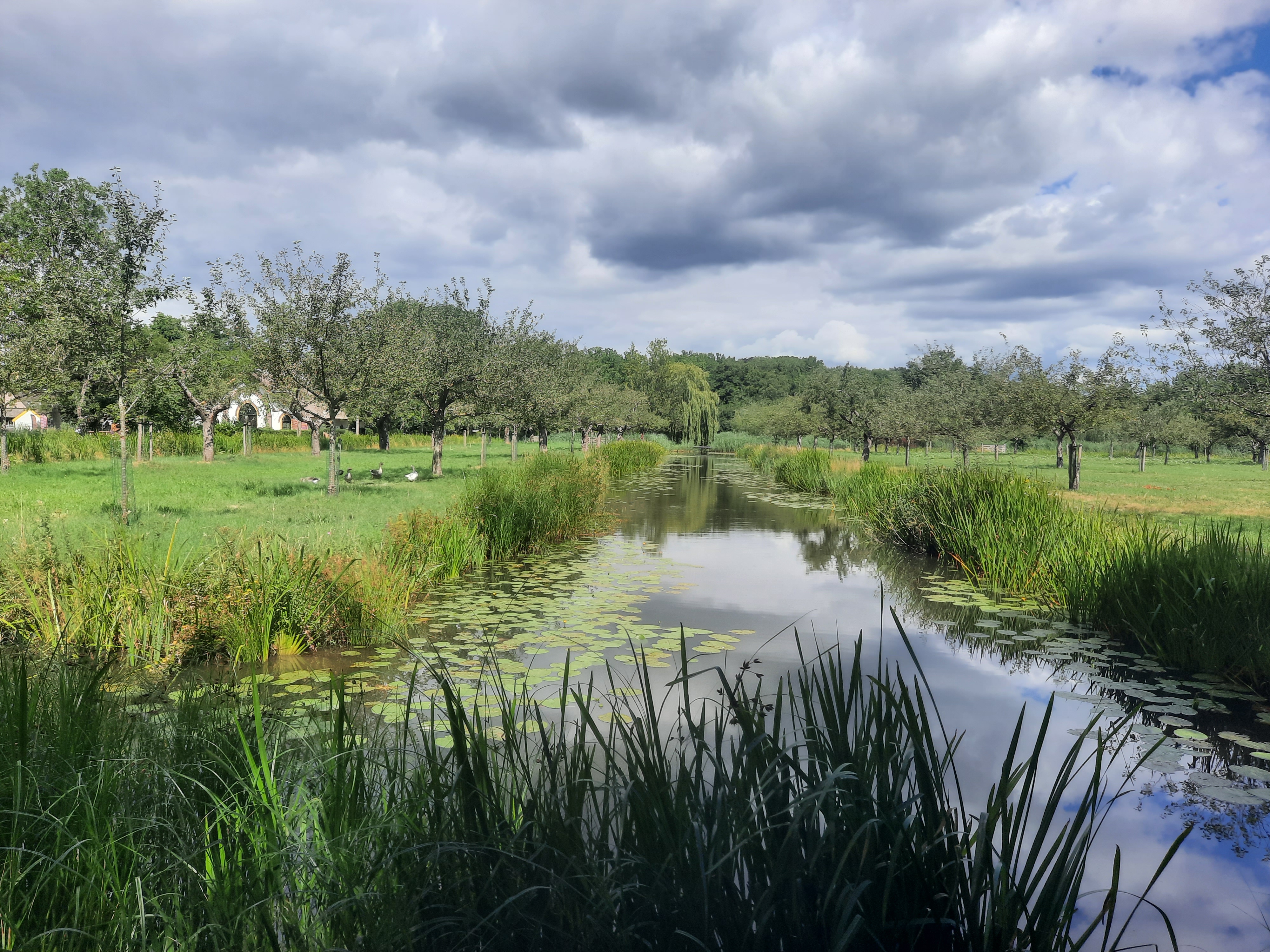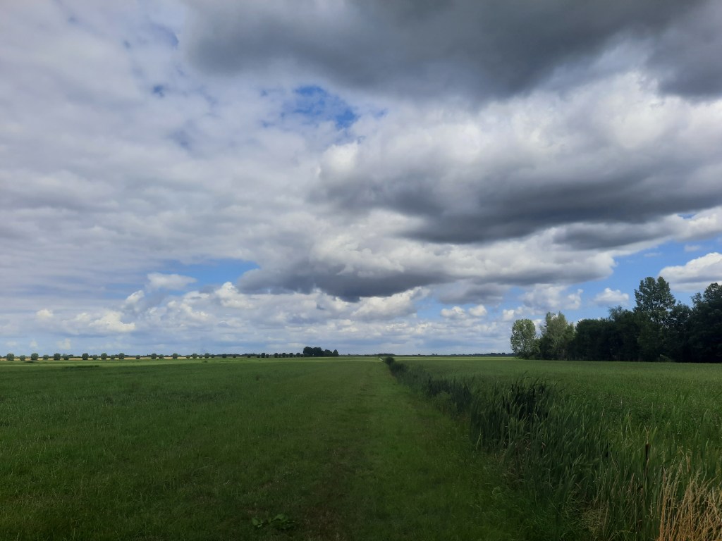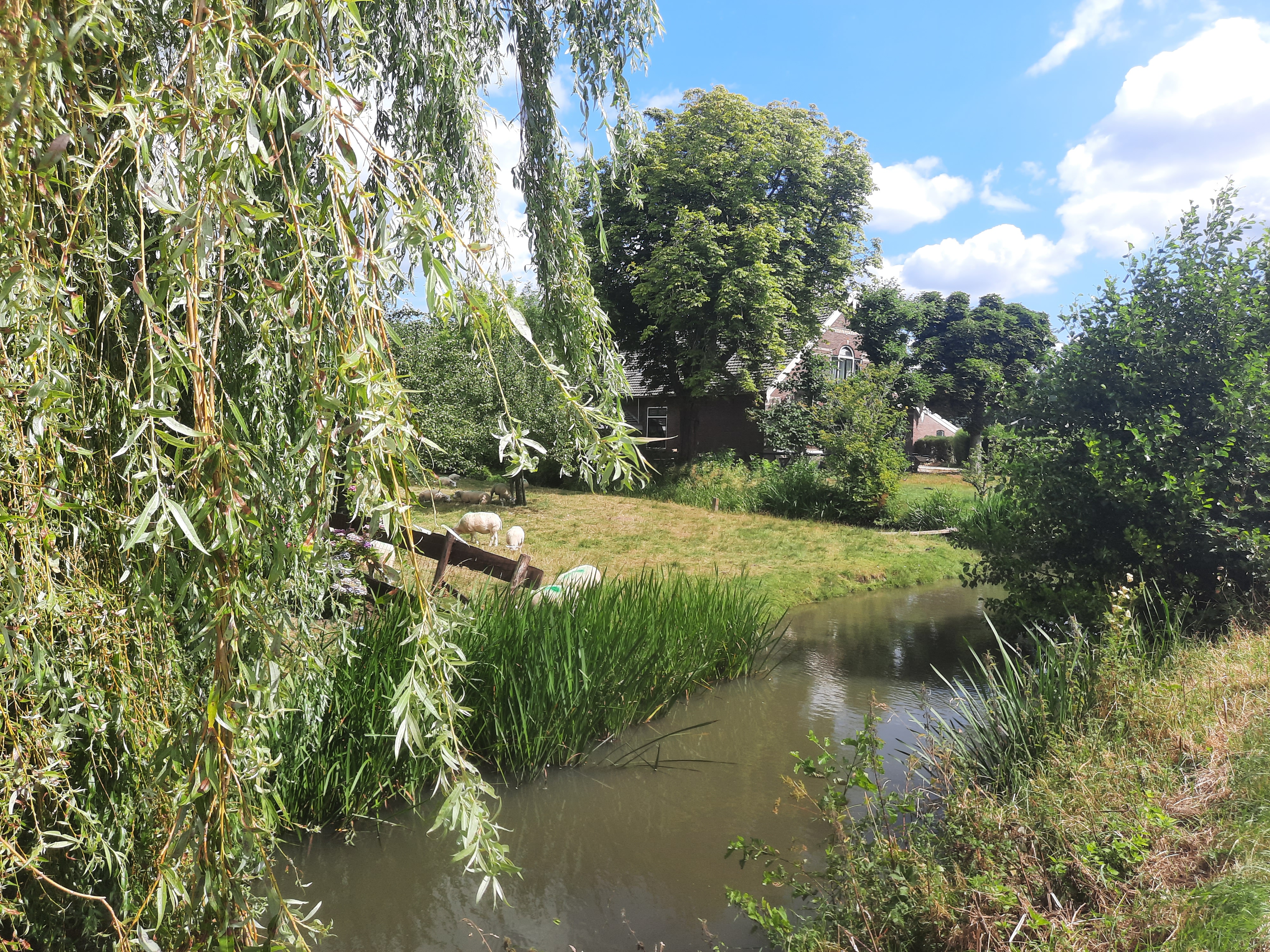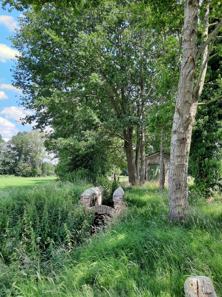 Het Gravenslootpad is een alleraardigste wandeling, maar wel een tussendoortje. Voor 6 augustus heb ik met mijn partner afgesproken het 100e klompenpad te lopen, maar dan moet nummer 99 ook voltrokken zijn. Het Gravenslootpad had ik uitgekozen. Een prachtig begin vanaf het station in Woerden, je loopt door landgoed Bredius. En heel opvallend voor mij als Oosterling, de hoeveelheid mensen die vriendelijk goedendag zeiden. Ik moet iets aan mijn vooroordelen over de Randstad doen. Aan de andere kant, ik had het kunnen weten, want dertig jaar terug werd ik belangeloos vervoerd door twee jonge scholieren. Toch? Al hebben ze me geen toeristische route getoond, want dat doe ik vandaag met de benenwagen. Zoals ik al zei een hele fijne wandeling door weilanden, met prachtig vergezichten.