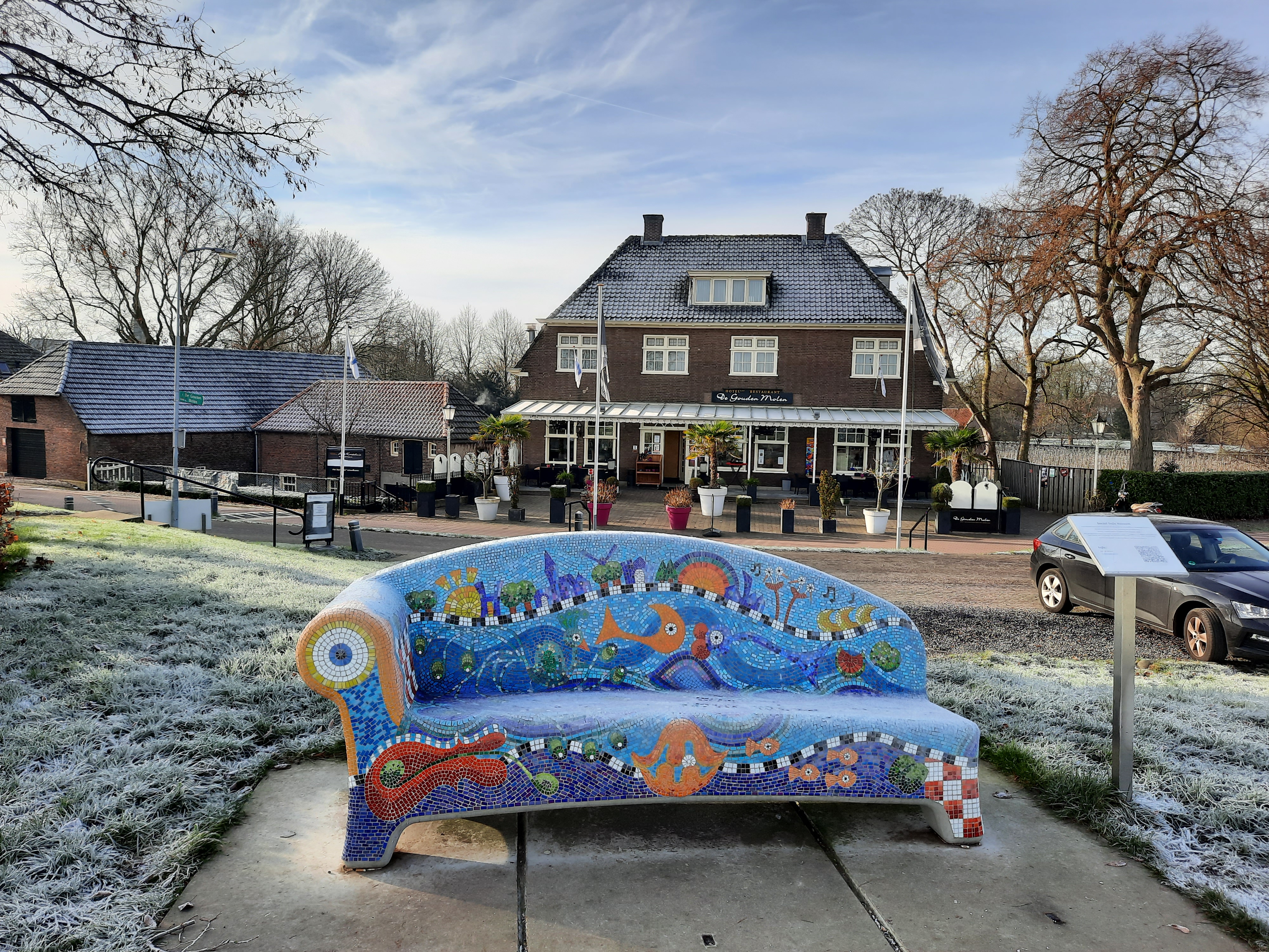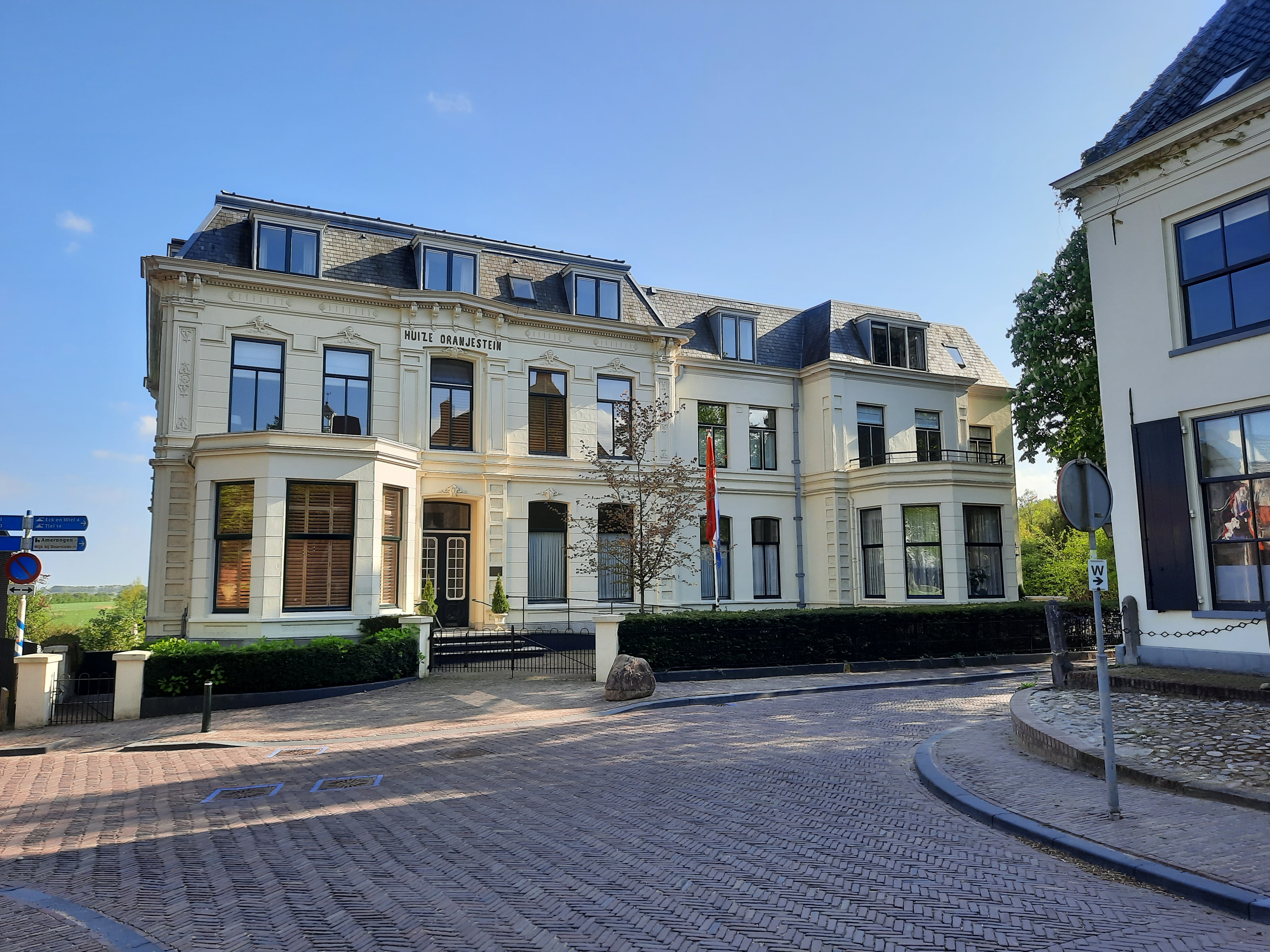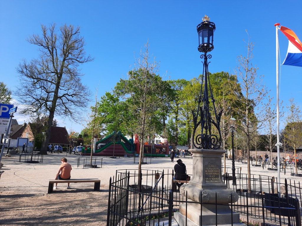 Aan het einde van de wandeling liepen we door Amerongen, de kers op de taart. Wat een plaatje is dit dorp. Ik vind dat het woord pittoresk de schoonheid van het dorp te kort doet. Het is een ‘tableau vivant’ van een verzameling ansichtkaarten. Prachtig. Maar het is niet voor niets 27 april 2022 dus de Oranjefestiviteiten zijn niet ver weg. Het nieuwbakken Kasteelplein doet dienst voor de festiviteiten. Maar ook op andere dagen zijn er in Amerongen tekenen van Oranjegezindheid. Er is een heuse Wilhelminaboom bij de Andrieskerk en een historische pand dat Huize Oranjestein heet. Dat is natuurlijk ook niet voor niets. Oranjegezind of niet, ik heb Amerongen en het Cotlandenpad in mijn hart gesloten.