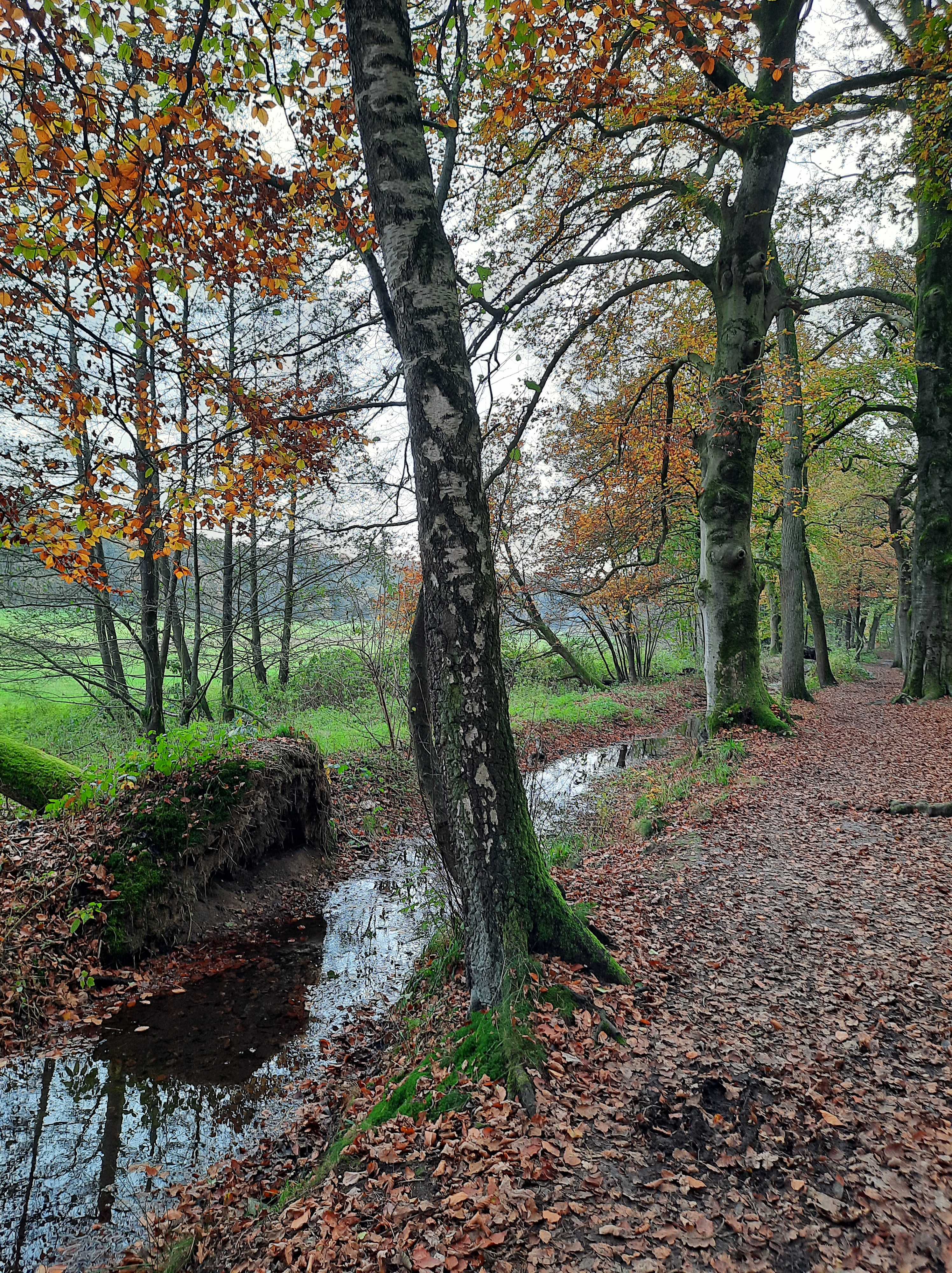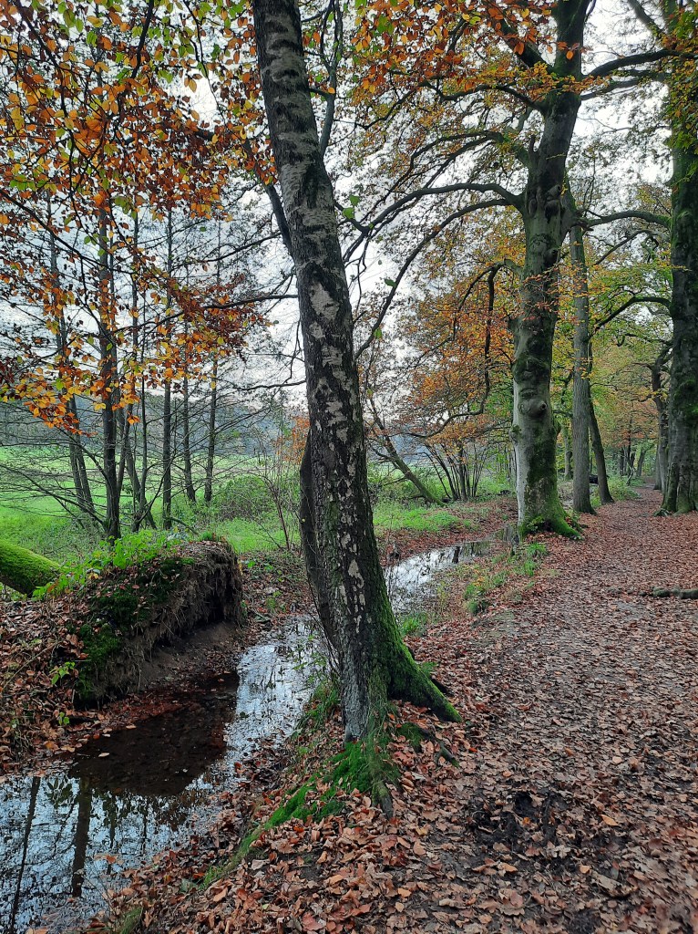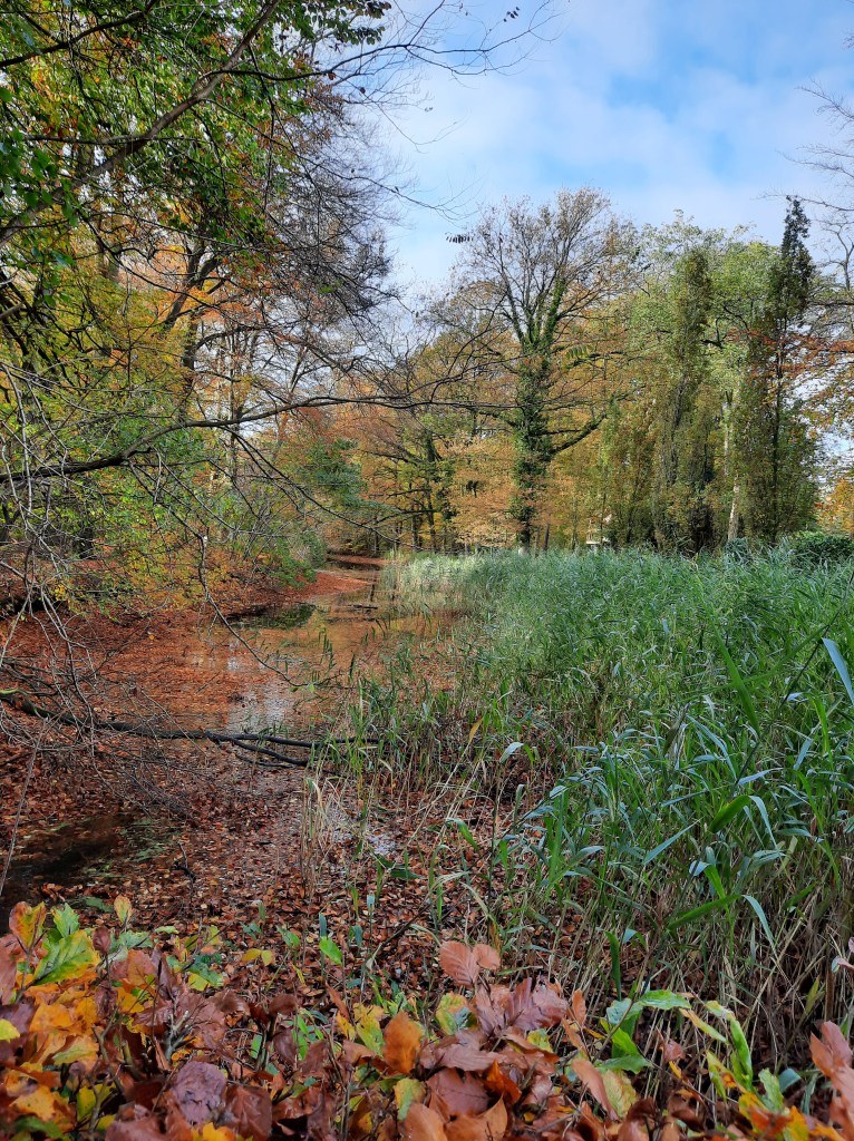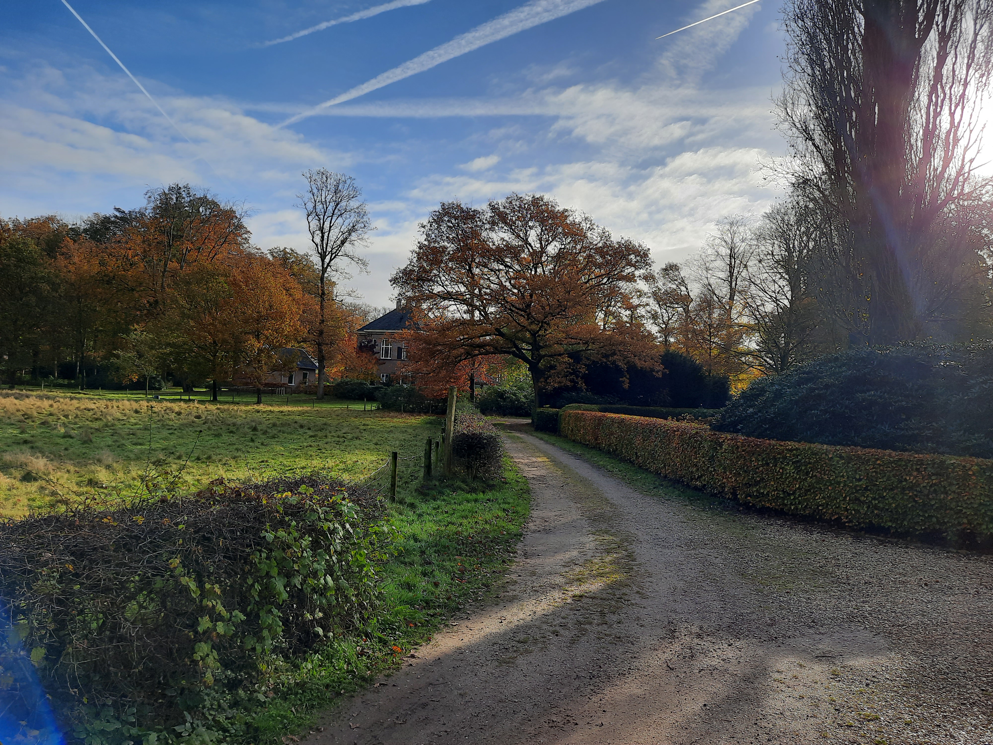 Omdat ik in oktober 2019 nog geen blogjes schreef over klompenpaden, moest de wandeling nog maar een keer gedaan worden. Vandaag onder verstilde omstandigheden. Wie wat zwaar op de hand is zou zeggen desolate omstandigheden, maar zo hebben wij het beslist niet ervaren. Goed het was zompig en grijs. De overweldigende herfstkleuren zijn op hun retour en de zon liet het afweten, maar ik had mijn eigen zonnetje bij me. We hebben de stilte niet voortdurend verstoord door smalltalk. In deze omgeving kunnen wij heel goed bq-at-en. Heh??? Be quite apart together!!!!!