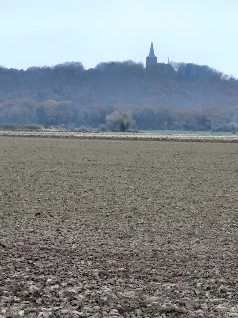 Met bijna vanuit alle windrichtingen zagen we de Elterberg. Je weet wel in Elten, bekend van de Boternacht. Om dichter bij de berg te komen, liepen we door een stukje Duitsland alsof ze nog even wilde jennen, kijk maar goed die is niet meer van jullie.