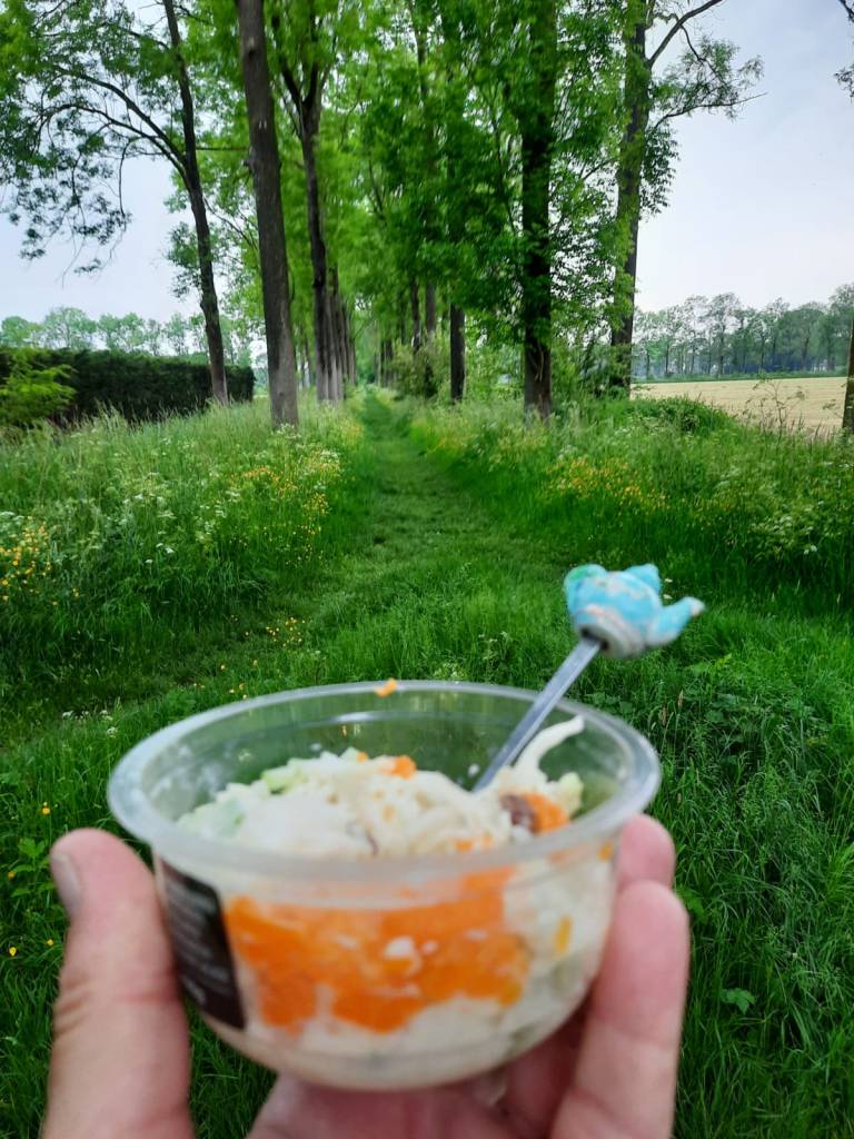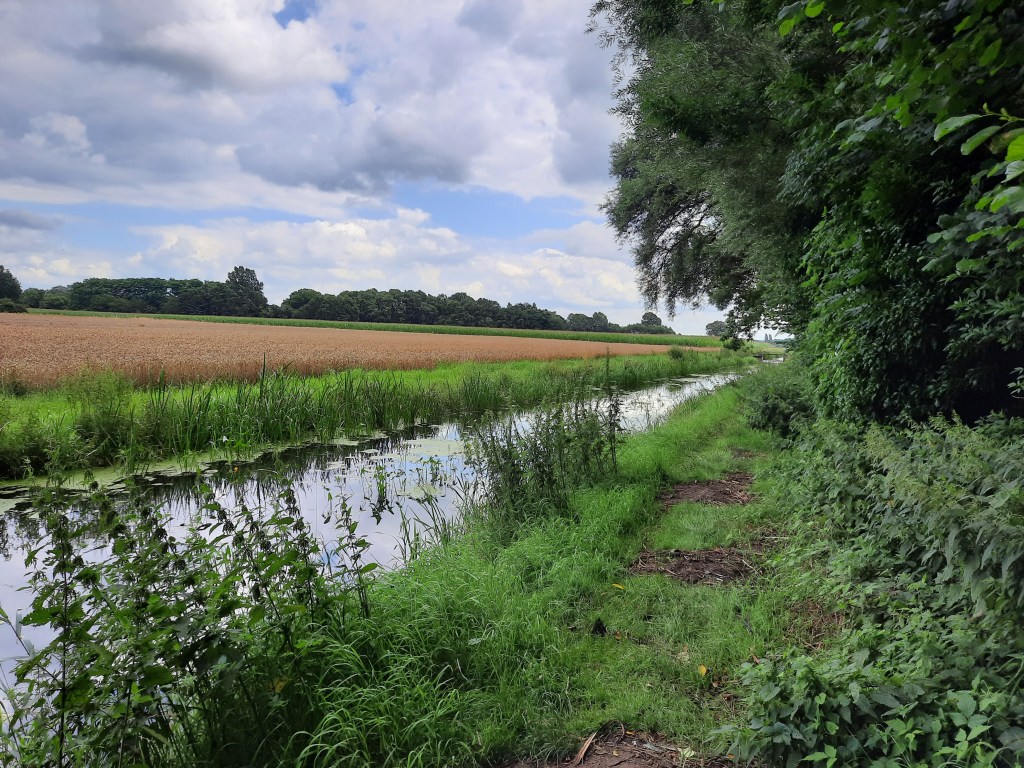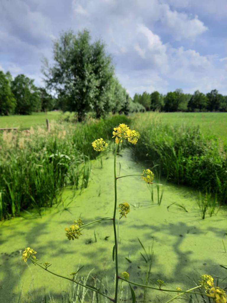 Ik zal er maar voor uit komen, na 66 klompenpaden is dit het eerste pad dat ik een beetje had voorbereid. Dat wil zeggen met de app de avond ervoor heb ik eens gekeken wat ik kon verwachten. Meestal is de enige voorbereiding de startplek inkloppen op mijn gps en starten maar. Onderweg tijdens het wandelen kijk ik wel wat ik tegenkom en dat is ook leuk, want anders houd je het geen 66 paden vol. Vandaag dus een beetje minder verrassing omdat ik wist dat ’t Meijerink zou tegenkomen (zie boven) en als ik op het goede tijdstip was geweest mogelijk de ijsvogelvlinder zou kunnen tegenkomen in het Zompbos. Een wat volgevreten kleine libelle zag ik aan voor zo’n zeldzaam exemplaar, maar ik was er in ieder geval op alert. Ook kon ik me een voorstelling maken van de waterhuishouding voor de arme boeren langs de IJssel in vroeger tijden. Ze waren nog wel eens de klos. Kortom ik was voorbereid op een aantal zaken.