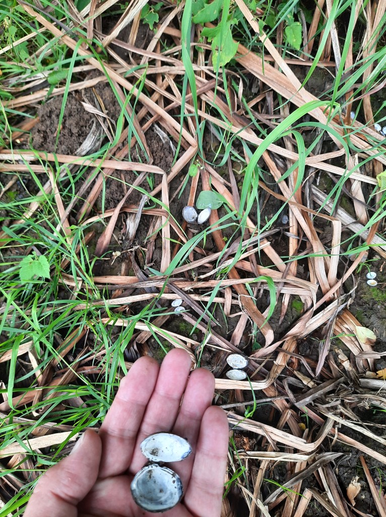 En dan wil ik aan het eind van dit blogje ook nog een interactief elementje toevoegen. Langs een van de weteringen, die onlangs ongetwijfeld hoger heeft gestaan, kwam ik schelpjes tegen. Zouden die door het hoge water meegevoerd zijn naar het achterland van de IJssel? Wat zijn het voor een schelpdieren? Geef gerust antwoord via dit blog. Bij voorbaat dank.