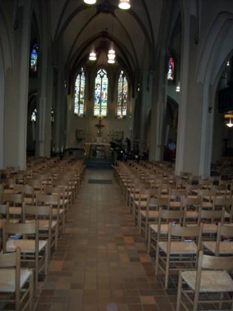 Binnen schoot ik de foto’s. Ik zag dat het misboekje voor 20 eurocent te koop is. Ik legde een muntje in het daarvoor bestemde mandje, in de hoop al lezend nog tot enige contemplatie te komen. Terwijl ik als een van de laatste wilde weglopen, zag ik dat een van de actieve kerkgangers bezig was met het uitblazen van de kaarsjes bij de Mariakapel. Maar dat kan toch niet, dacht ik verschrikt. Die kaarsjes waren net aangedaan door gelovigen of Maria-aanbidders die hun wensen en noden middels een kaarsje op die manier aan de Heiland hebben kenbaar gemaakt. Dan maar snel twee foto’s maken, als bewijsmateriaal. Terwijl het flitslicht door de kerk ging, bedacht ik me dat de man te goeder trouw handelde, waarschijnlijk in opdracht van de plaatselijke brandweercommandant. Zo blijkt maar dat de scheiding van Kerk en Staat nog niet altijd zo gemakkelijk is.