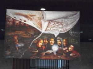 Wim Rosendahl deed erg zijn best om het kruis voor mij als fotograaf zo mooi mogelijk in beeld te brengen door de lampen aan en uit te doen. Ook ik, als fotograaf, deed erg mijn best, maar vrees het resultaat. Ook hier gelden de profetische woorden van de man in het kerkhalletje: