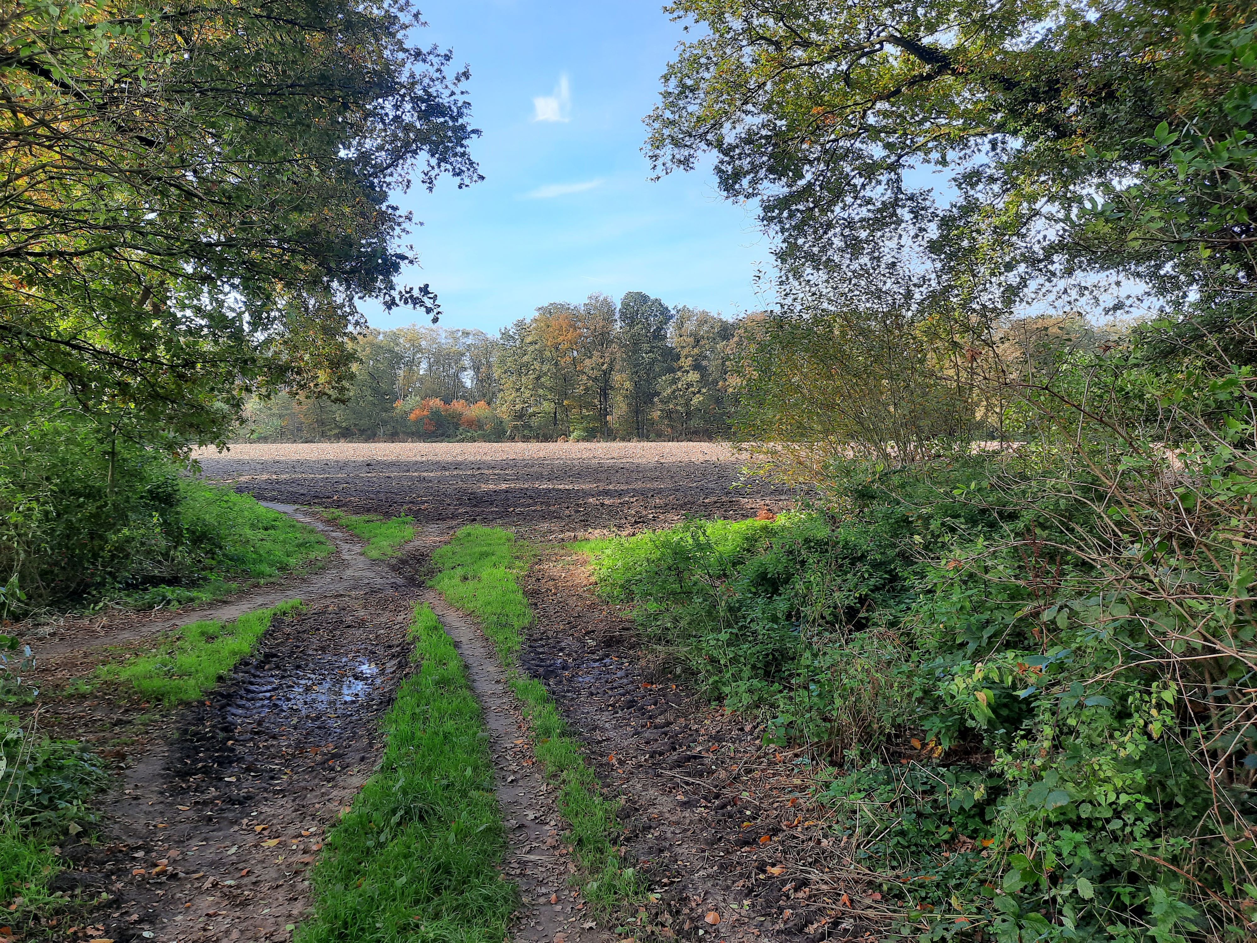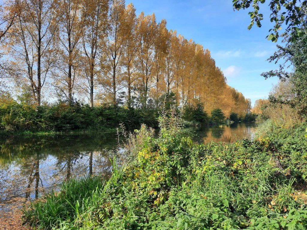 En ik wilde er mooi weer bij hebben, want met een blauwe lucht kan een foto bijna niet mislukken is mijn bescheiden oordeel. Zondag 13 november was een hele mooie zondag, bijna warm. Veel bomen zijn nog best wel groenig al loopt de ouwewijvenzomer echt wel op zijn eind vermoed ik. Dus veel later in het jaar had het niet meer gekund.