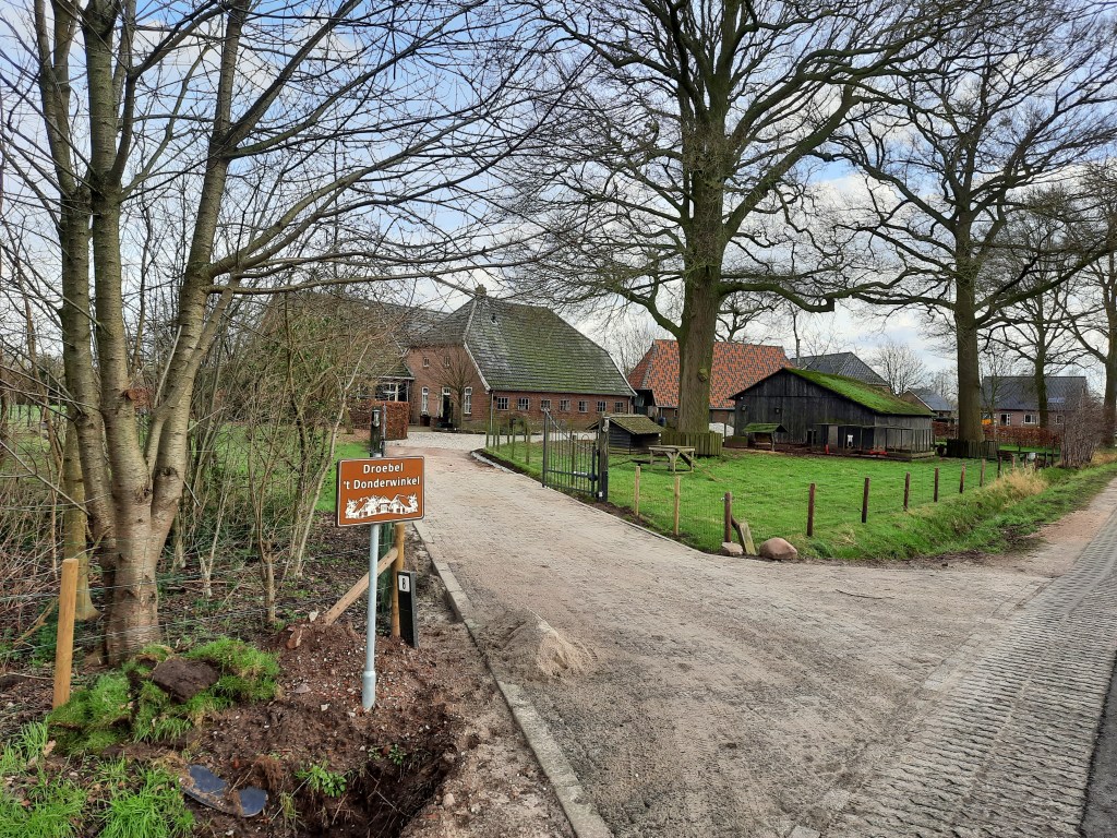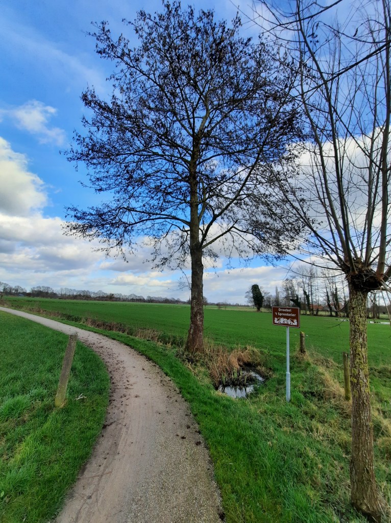 Tijdens het wandelen begin ik te beseffen dat Droebels ‘serious business’ is in Zieuwent. De Droebelroute leidt me rond langs meerdere Droebels die als zodanig ook zijn aangegeven. De kerkepaden zorgen ervoor dat je ook tussen de weilanden droge voeten houdt en dat is niet onbelangrijk voor de tijd van het jaar. De Droebelroute, een leuke wandeling die me in ieder geval stimuleert om even wat achtergrondinformatie bij elkaar te sprokkelen. Je weet maar nooit, want als de Droebelmaatschappij een feit wordt, ben ik in ieder geval voorbereid.