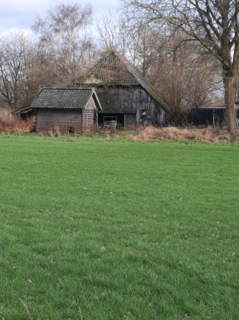 Ruim veertig jaar later zoek ik heel bewust op de AchterhoekrouteApp of er een wandeling beschikbaar is in Zieuwent. Ik vind de Droebelroute, beginnend bij de St.Werenfrideskerk. Een snelle blik op de App leert me dat een Droebel een groepje huizen/boerderijen is waar het noaberschap nog gepraktiseerd wordt. Verder stond ik er niet bij stil, gewoon lekker wandelen. De zon schijnt af en toe, maar de wind maakt het guur.