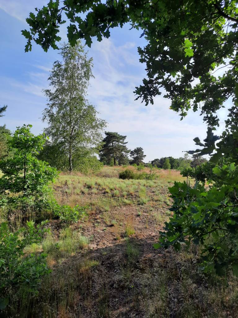 ,,Heeft u dat wel eens” zou een heel bekend vaderlandse dominee kunnen zeggen. Zo beginnen veel bespiegelingen van dominee Gremdaat. Vaak zijn het lieve verhaaltjes met een groot relativeringsvermogen en zalvend voor de ziel. Nu, ik had dat afgelopen woensdag nodig op het werk. Het is dertig plus graden, er is geen airco en de collega’s zijn ook weinig inspirerend want ze hebben te maken met dezelfde dertig graden. Er is maar één remedie, wegwezen want mijn hersens waren aan het pruttelen. Helaas kon ik niet verdwijnen vanuit het werk omdat ik laptop en papieren met een groot privacy gehalte niet onbeheerd in de auto kan achterlaten. Snel naar huis, een salade voor onderweg kopen en naar Otterlo, mijn 62e klompenpad beslechten. En na vijf minuten was mijn chagrijn en boosheid als sneeuw voor de zon verdwenen bij het zien van bovenstaande dame. Een goed begin van nog bijna vijftien kilometer bos en rust op de Veluwe.