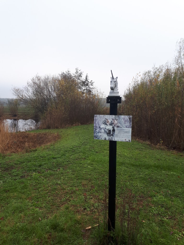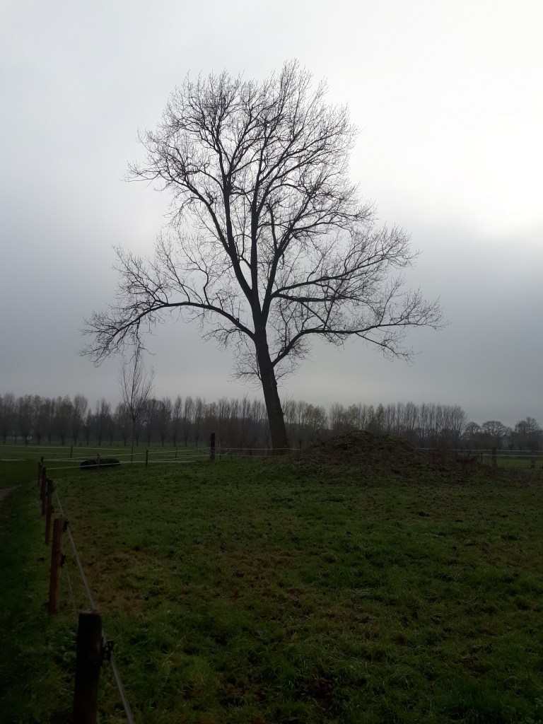 Bij het begin spotte ik op de bekende startborden dat in het voorjaar/de zomer op dit klompenpad de spotvogel broed!!! Mijn vogelkennis is beperkt, maar bij een spotvogel had ik altijd het idee dat het een licht schertsende wijze van schrijven is? Weer wat geleerd, de spotvogel dus. Maar het is nog wat vroeg voor het broedseizoen, hoewel het lekker fris wandelweer is met een strak blauwe hemel. Als wandelaar van klompenpaden en blogger van flauwe stukjes daarover, zal ik de honneurs waarnemen voor deze spotvogel. Ik zal het Terbroeksepad een beetje opzomeren.