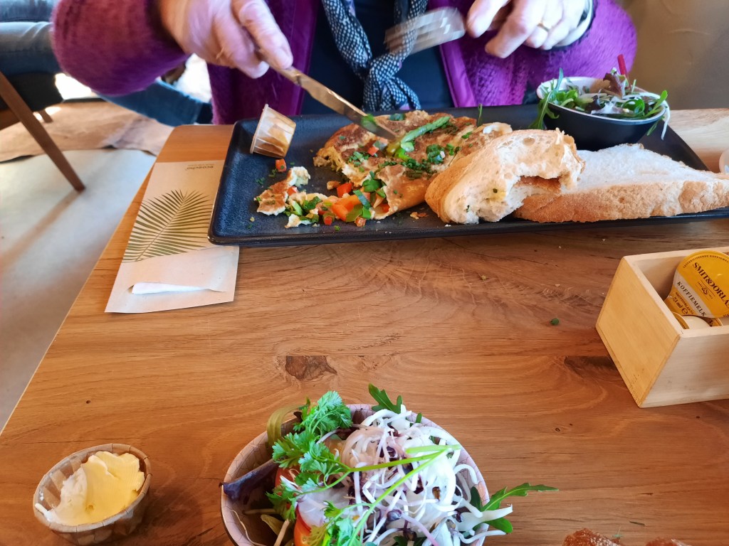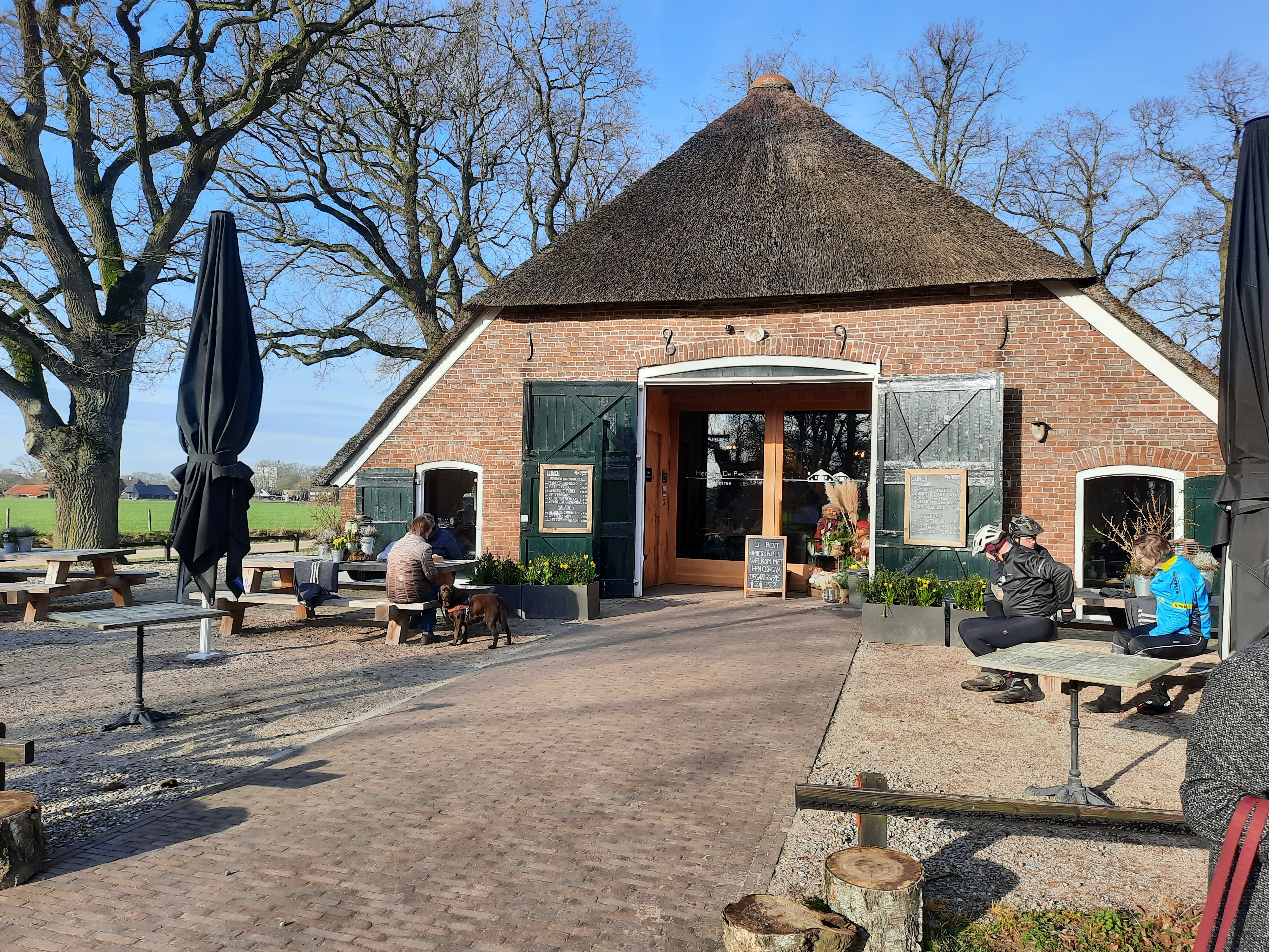 We belanden in Haarle, bij Herberg De Pas. Met mondkapje en QR-code, mijn moeder een papieren en ik de app, worden we hartelijk ontvangen en nemen plaats aan het raam. We hebben zicht op de fietsers en wandelaars die hun dagelijkse bevrijding vieren in het zonnetje. Het wordt voor beide een omelet Herberg, een variant op de boerenomelet. Het was lekker, al weet ik niet eens of het met of zonder vlees was. Het maakt niet uit, ik ga hier niet extra maatschappelijk bewust zitten doen. Het is goed zo, de vrijheid van vandaag.