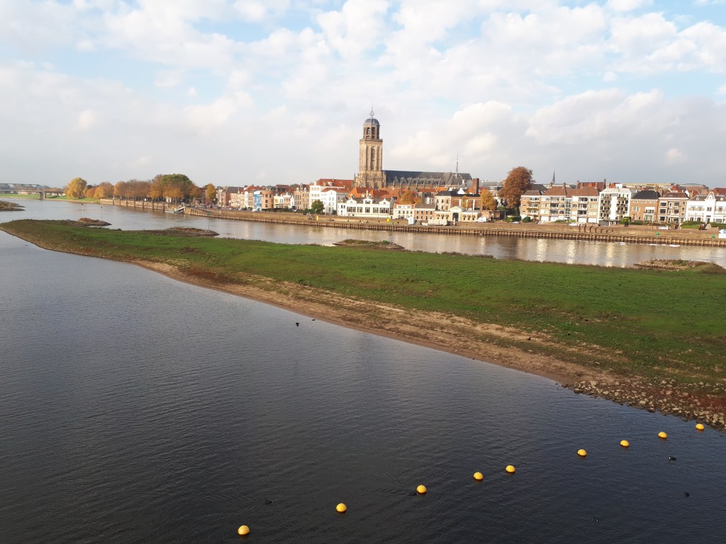 Het doel was al enige jaren geleden om mij kennis te laten maken met de ontwikkelingen rondom de IJssel bij Deventer. Ruimte voor de rivier, een soort van Deltawerken om grootscheepse overstromingen bij hoog water te beperken. De partner van mijn oudste nicht was hier langdurige bij betrokken vanuit zijn functie bij Rijkswaterstaat. Ooit deelde hij een filmpje van een buurvrouw die de veranderingen dag voor dag met foto’s heeft bijgehouden. (een mustsee!!!!! voor de liefhebber van planologische ontwikkeling, kunst en waardering voor mensen met geduld en toewijding. Mijn belangstelling was gewekt, terwijl ik nog helemaal niet van het bestaan van klompenpaden wist. We spreken dan over 2015/2016. En zie dan maar eens tijdig een afspraak te maken. Dat is dus vandaag gelukt.