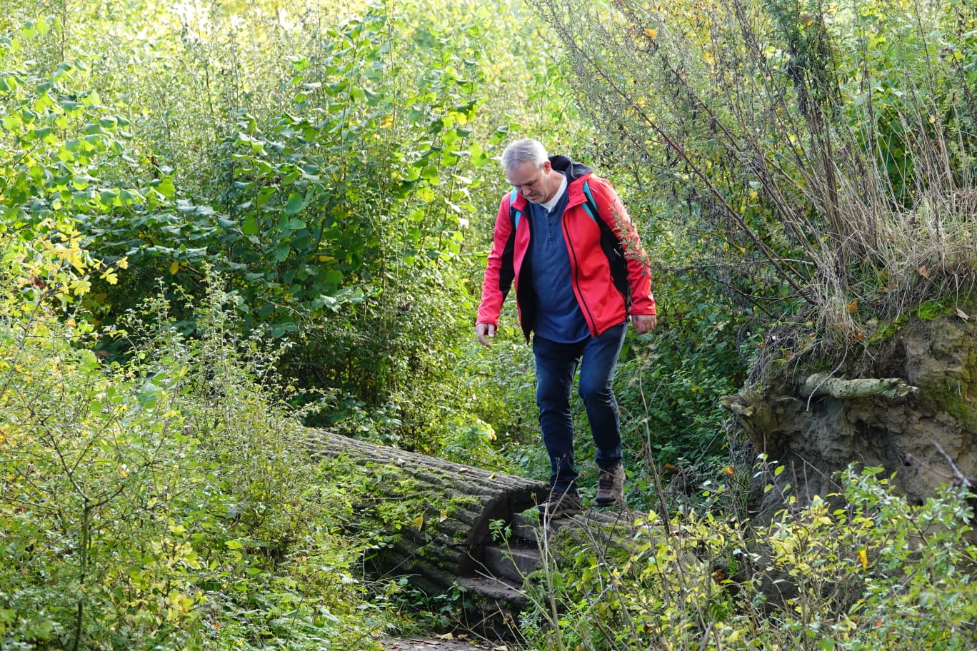 In mijn vorige klompenpadverslag maakte ik melding van mijn afkeer van selfies, nu een ander een foto maakte van mijn wandelverrichtingen zal ik bij wijze van hoge uitzondering een actiefoto foto plaatsen.