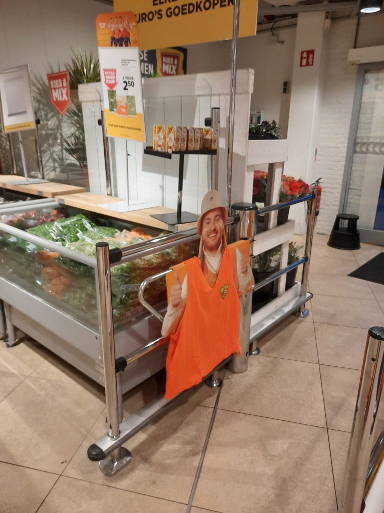 Bij binnenkomst in de winkel baardman in een hesje, je kan er niet om heen. Ik was verbaasd, hoogst verbaasd. Zal dat alleen hier zien? Eigenlijk moest ik rechtsomkeer maken, maar je weet wel, haast en Feyenoord vanavond op tv………. Even overwoog ik als revolutionaire daad proletarisch te winkelen als revolutionaire tegenactie tegen het onmenselijk kapitalisme.