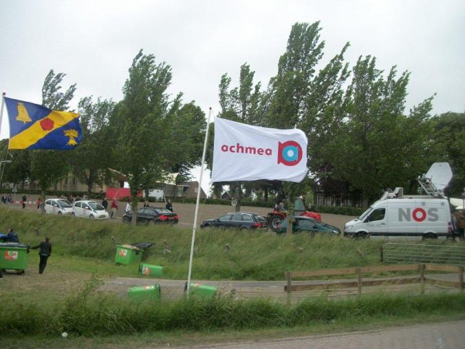 Achlum is een klein pittoresk dorp, maar niet zo klein dat de bijna 3000 bezoekers elkaar op de hakken hoeven te lopen. De drukte op de meeste plekken kenschets ik als gezellig. Het kaatsveld is gebombardeerd tot het centrum van Achlum. Hier vindt ook de opening plaats. Met het noodzakelijke kopje koffie op een winderig, maar droog terras bij een van de tenten, bekijk ik het programma nogmaals en natuurlijk de mensen om me heen. Wie zijn het die ‘De staat en de toekomst van Nederland’ deze dag met mij gaan bepalen? Ondertussen zie ik mensen, waarbij ik de neiging heb om ze goedendag te zeggen omdat ze me bekend voorkomen. Dat doe ik natuurlijk niet, want al kom ik uit de provincie, zoals Randstedeling denigrerend zeggen, zo wereldwijs ben ik nog wel. Ik moet trouwens nadenken over de psychologische term die aangeeft dat bij een veelheid aan stimuli, de mens geneigd is om het bekende meteen op te pikken. Dat verklaart natuurlijk de neiging om te staren. Het dat geen selectieve waarneming?