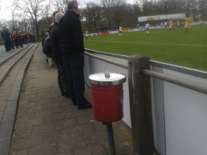Voor mij gaan drie heren staan, die een onvervalst Sallands accent hebben. Volgens mij is één van hen ook nog het zenuwcentrum voor de sociale media, want standen werden telefonisch doorgegeven. Ik heb de gehele eerste helft geluisterd naar hun commentaar. Volgens mij begrepen ze het spelletje wel. Ik ken ze niet, maar ze zullen zichzelf wel op de foto herkennen.