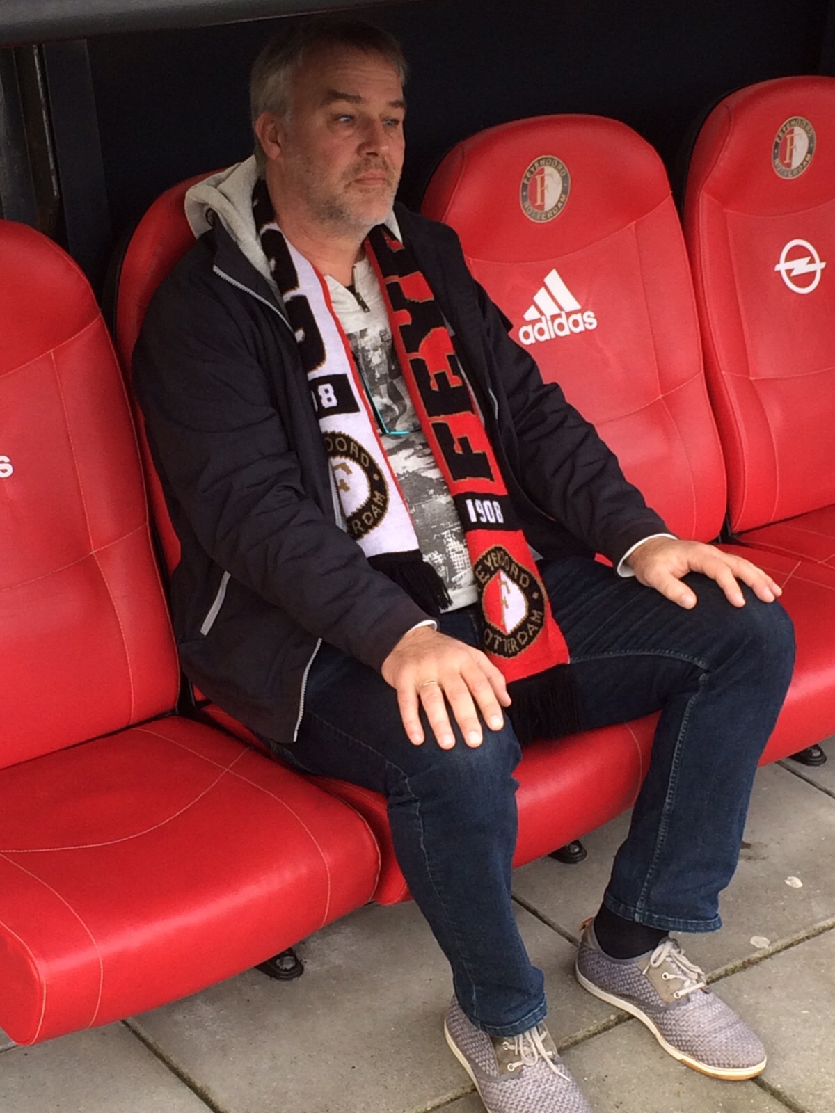 In de ochtend waren we op tijd voor een rondleiding op het heilige gras dat we alleen maar mochten bekijken, maar niet beroeren. Een lege Kuip is bijna net zo indrukwekkend als een vol stadion. In de dug-out nam ik plaats en zag een betere wereld voor me. Een wereld waar hardwerkende voetballers niet zouden hoeven buigen voor de lucky ones. Ik dacht na over een mooi kampioenschap dit seizoen.
